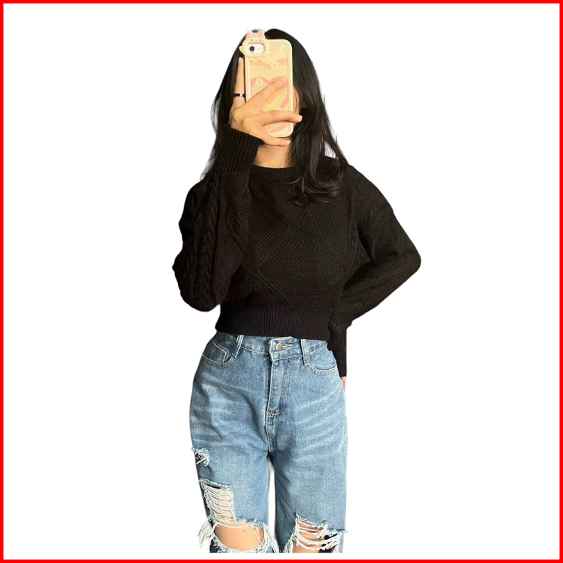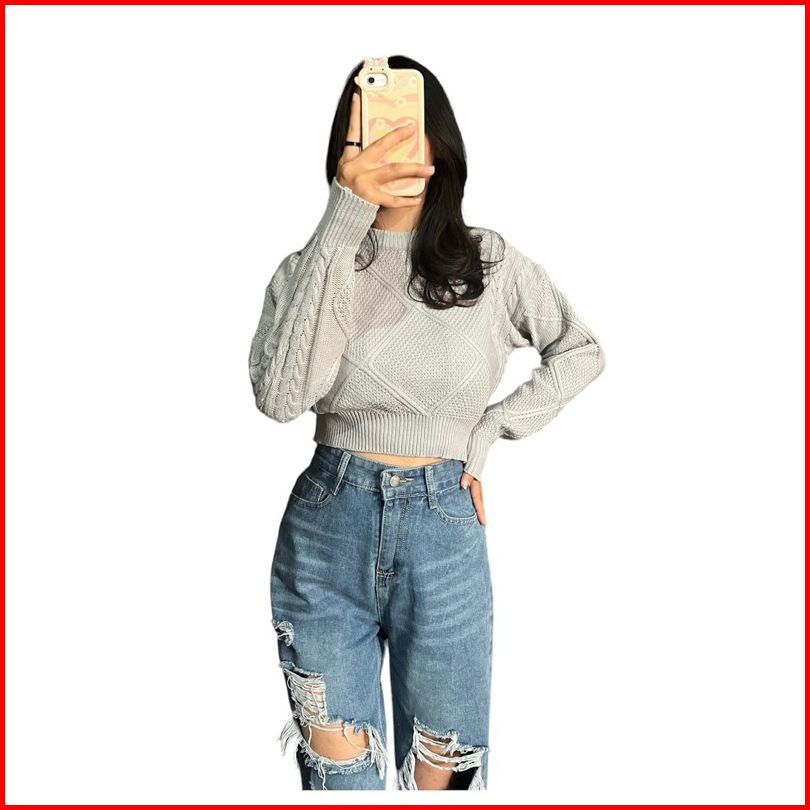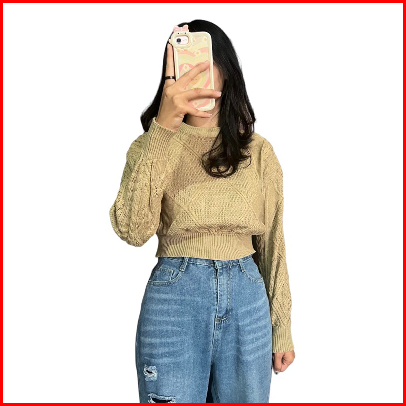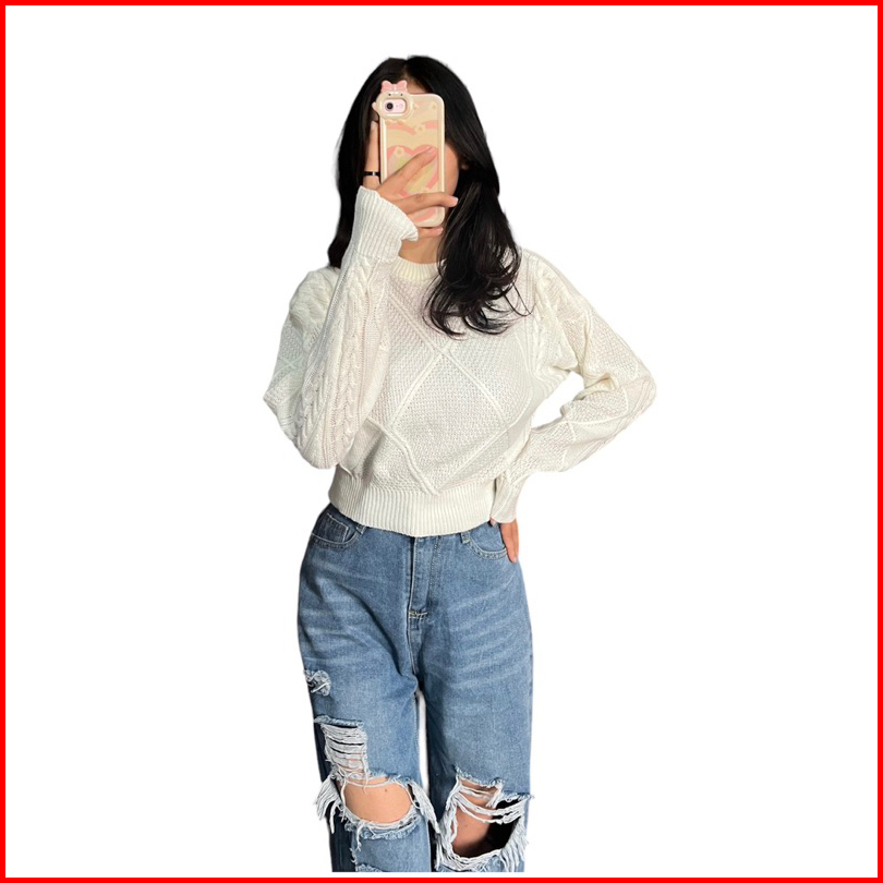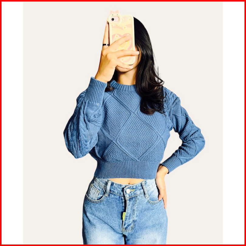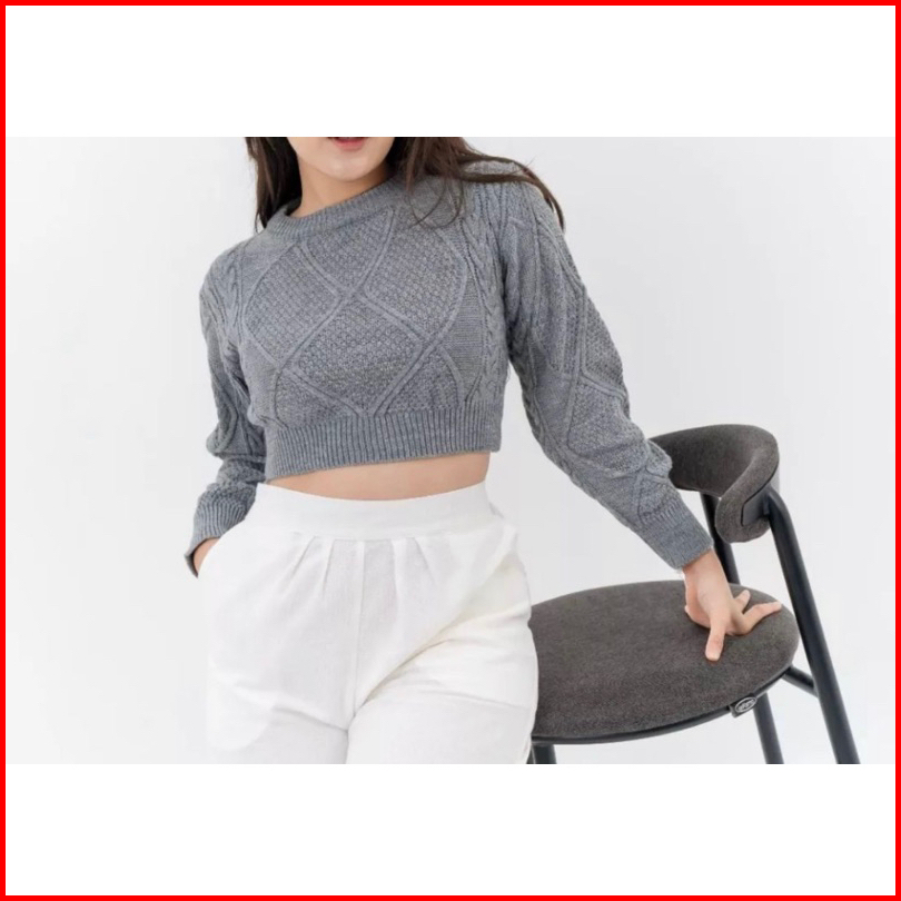 Lady Knite Cable Croope Sweater Rajut Wanita Knitwear