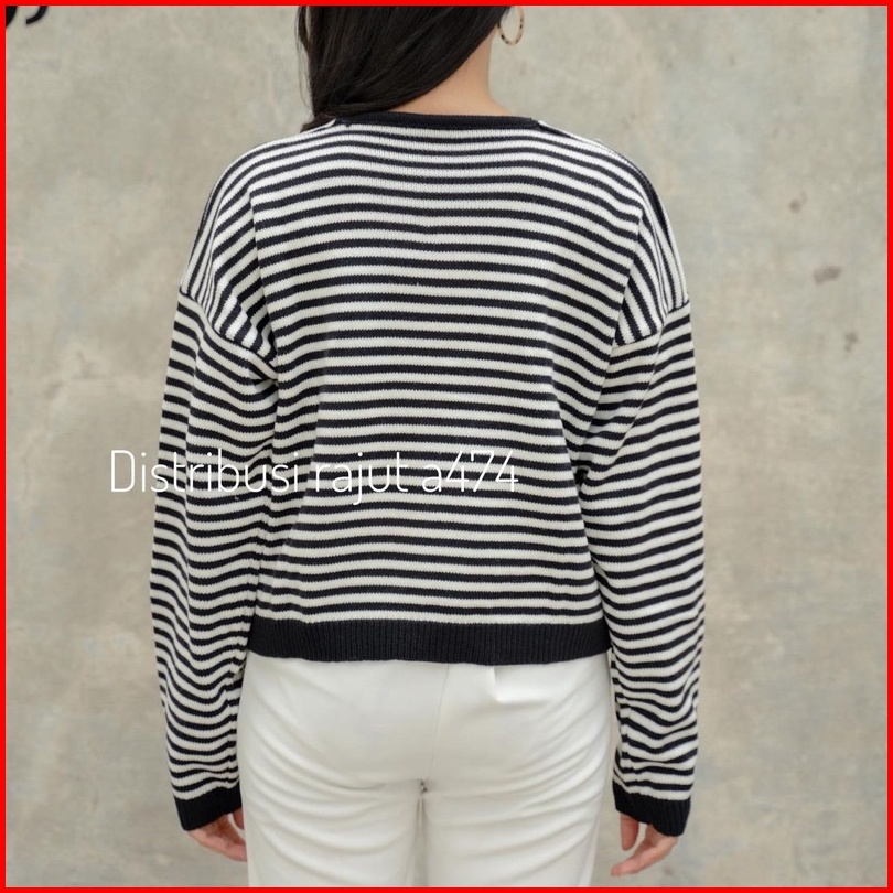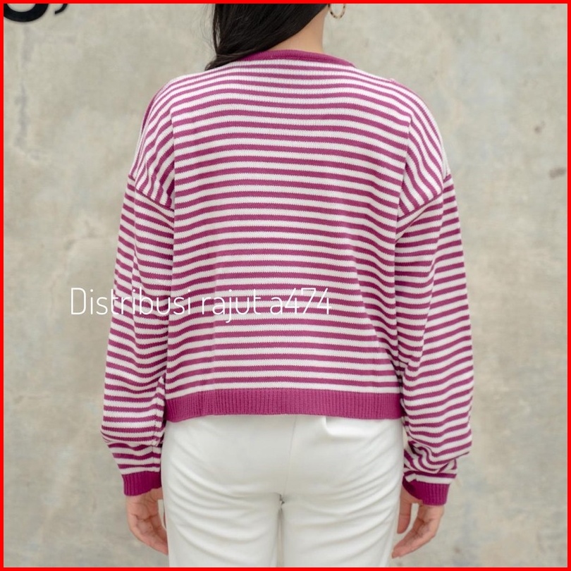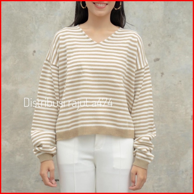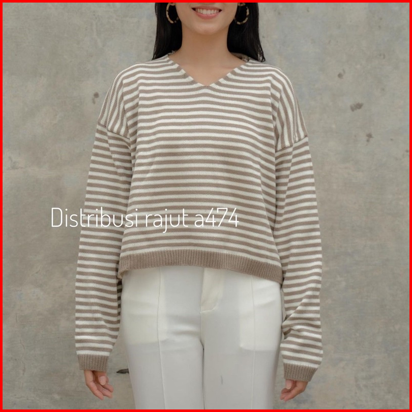 Winda Mall Sweater Rajut Garis Garis Kerah V