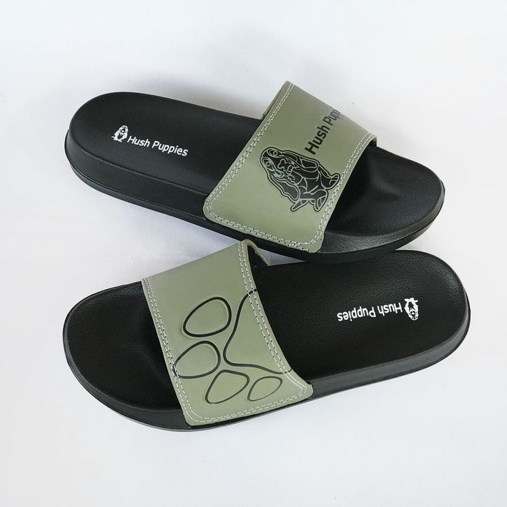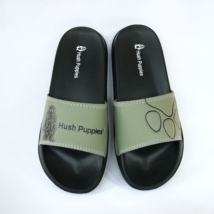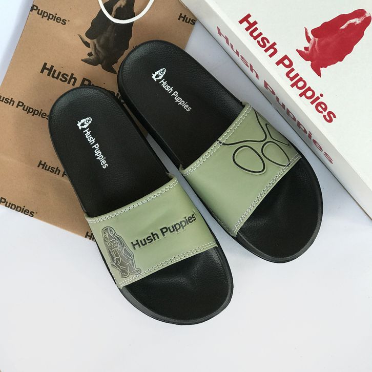 SANDAL SLOP PRIA HUSH PUPPIES OLIVE BLACK BIG LOGO IMPORT PREMIUM SOL EMPUK SANDAL SLIP ON SENDAL SELOP COWOK CEWEK