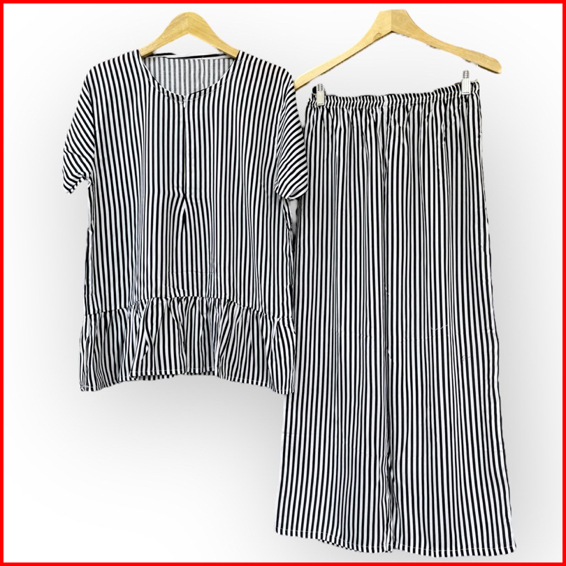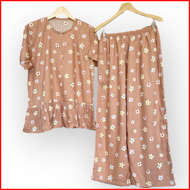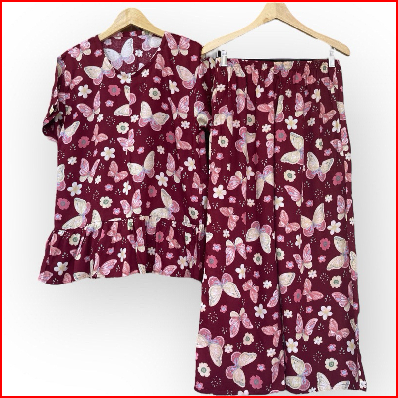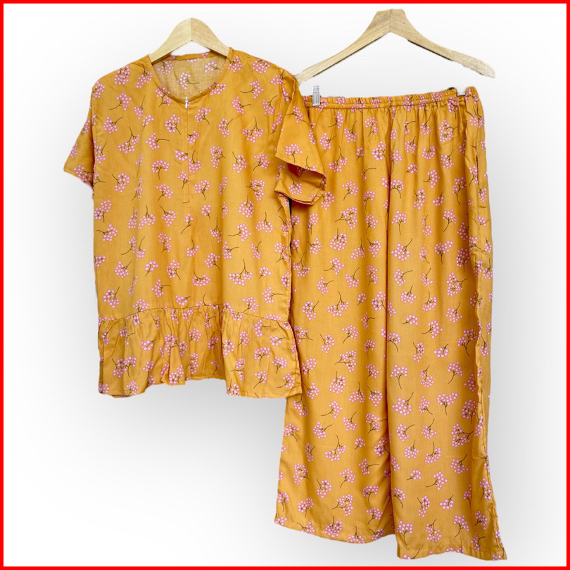 Pajamas Piyama Ruffle Lengan Pendek Celana Kulot Set Rayon