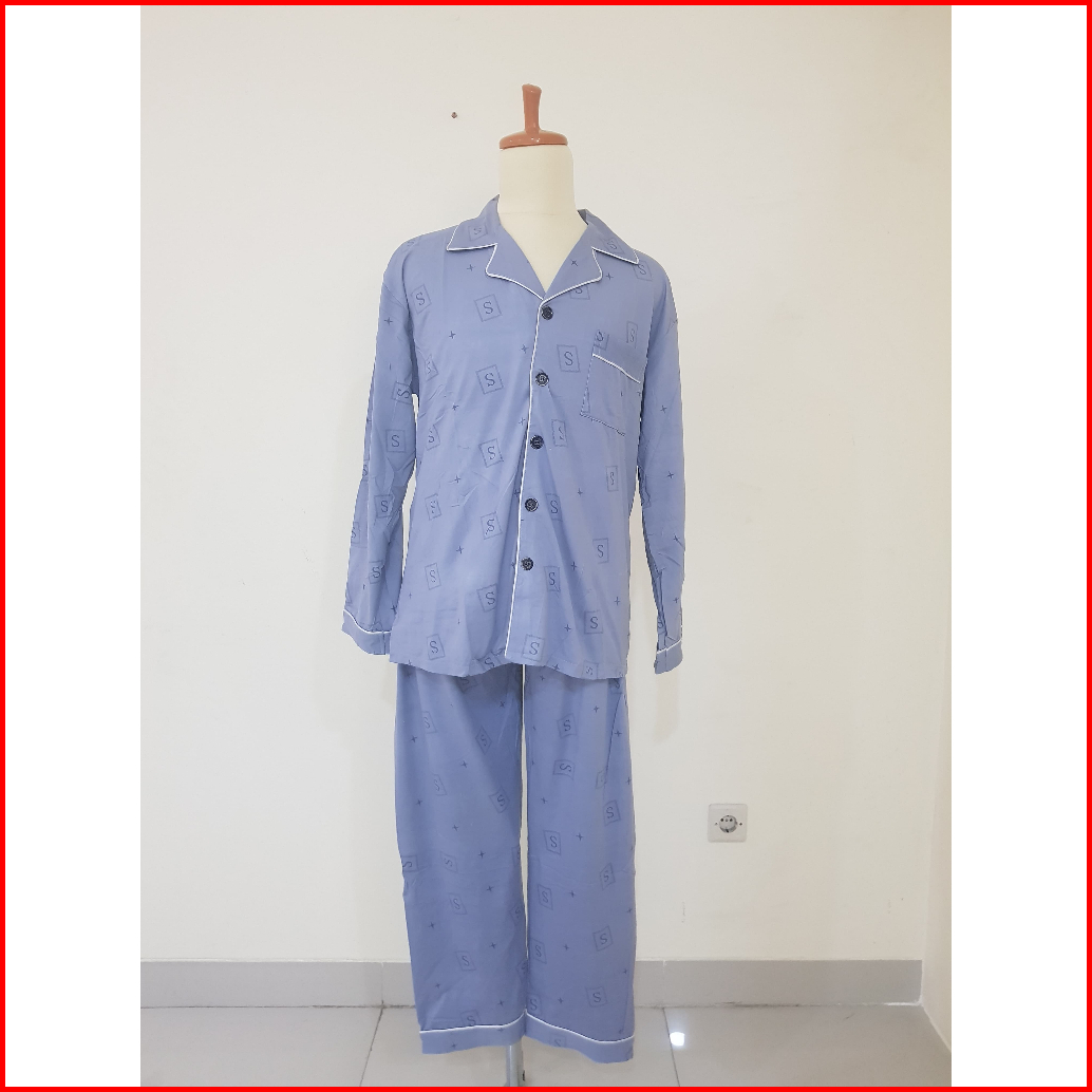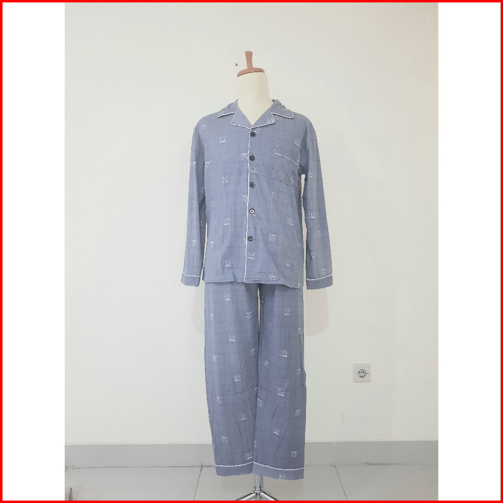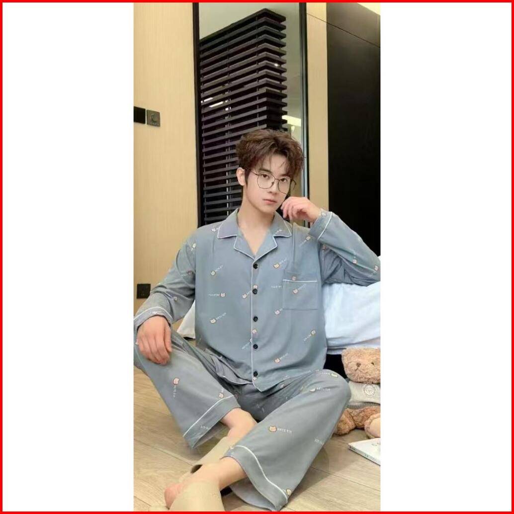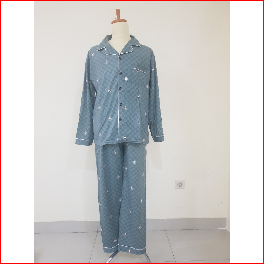 Pajamas Pria Dewasa Kaos Katun Motif Kancing Krah Import Premium Yellow Setelan Celana Panjang Big Size L-3xl Terbaru