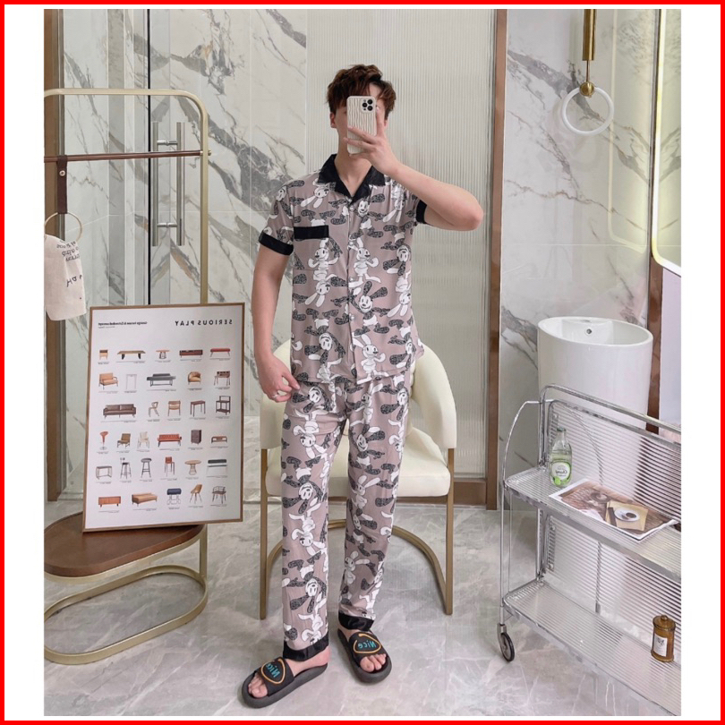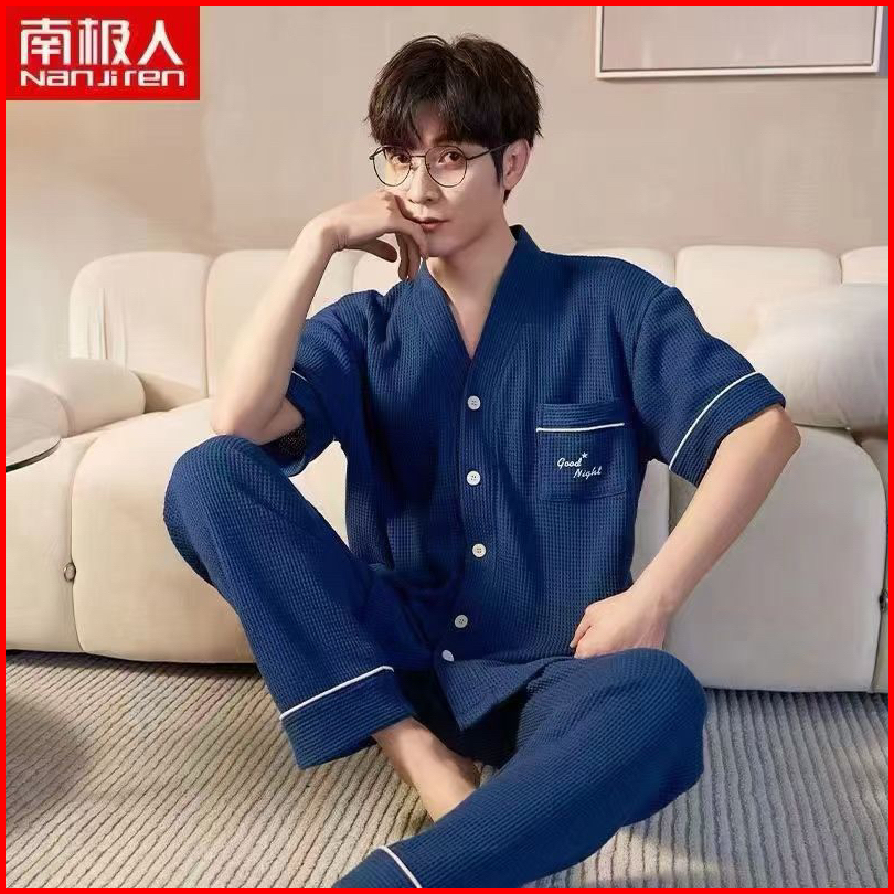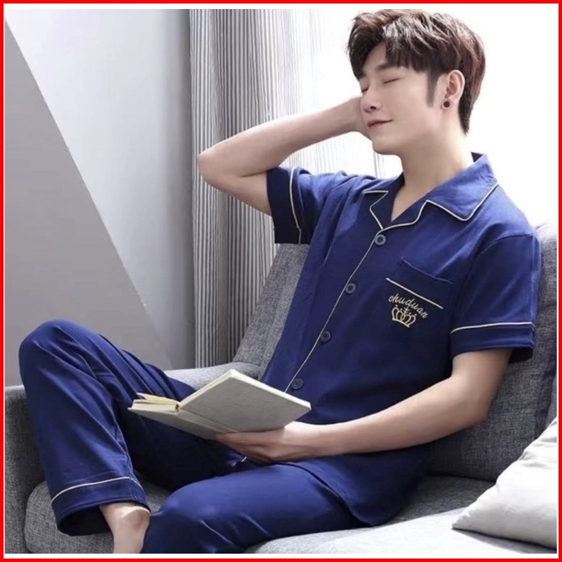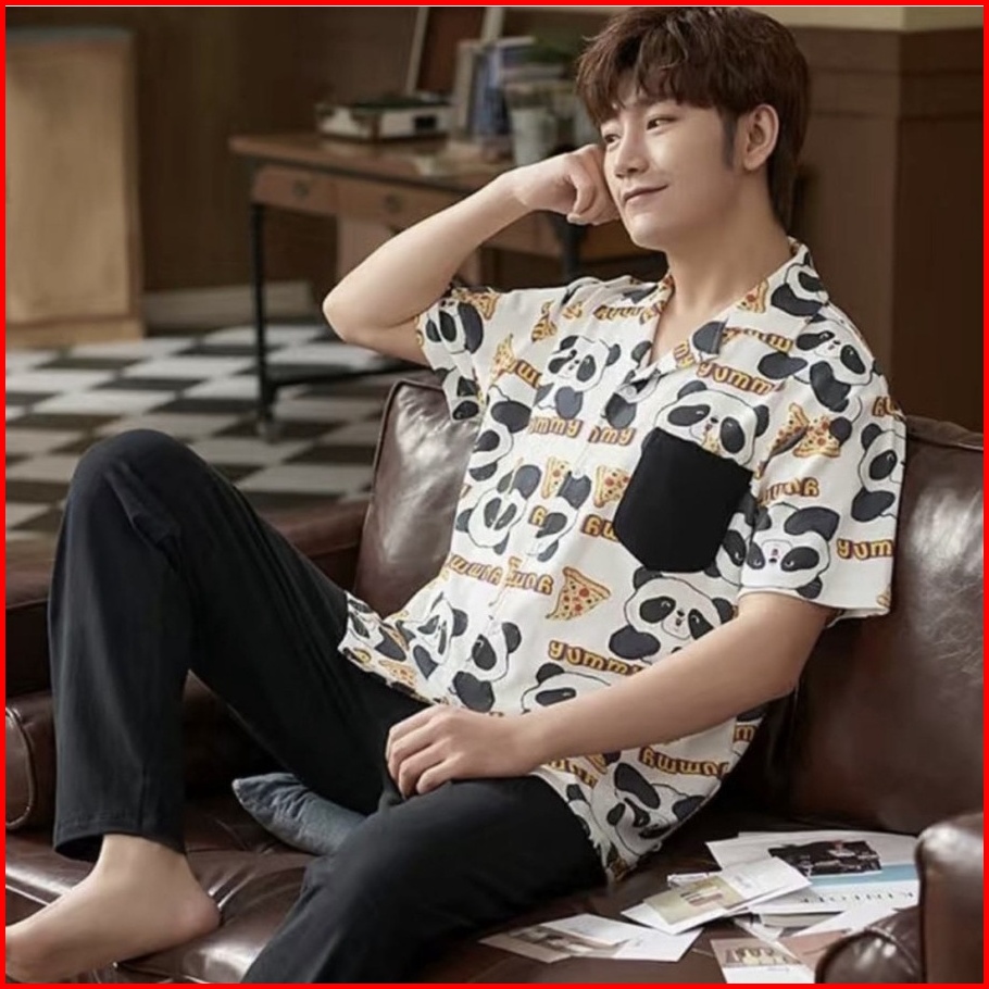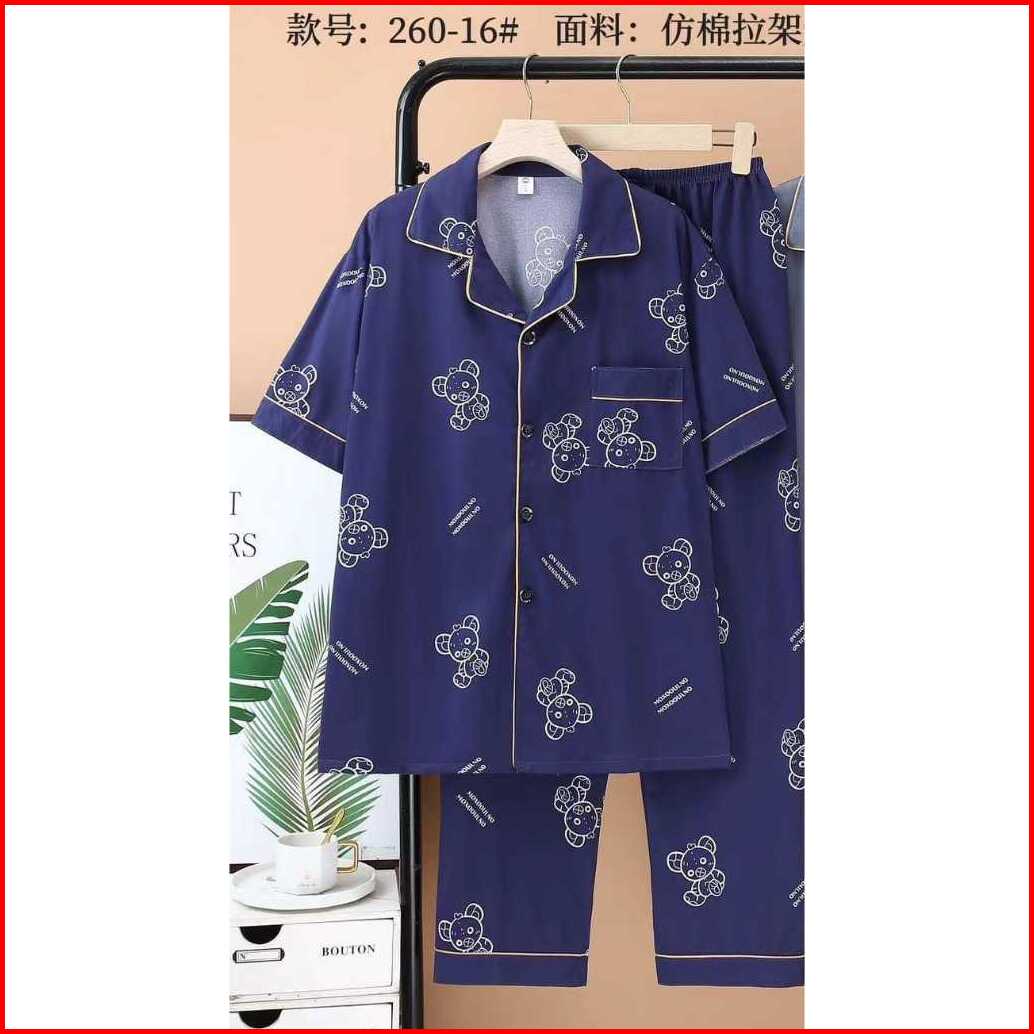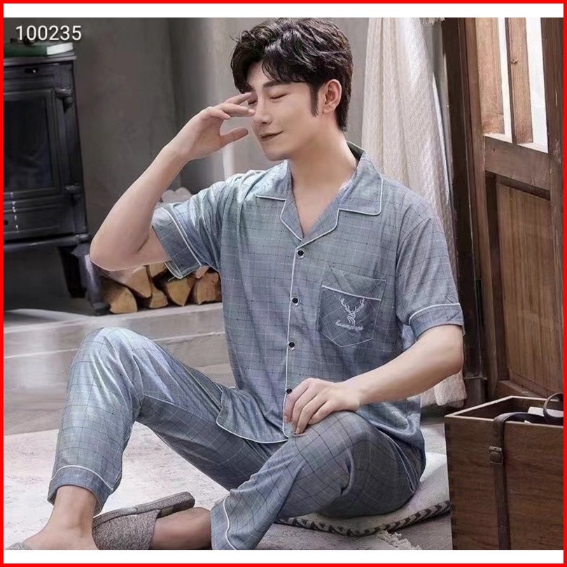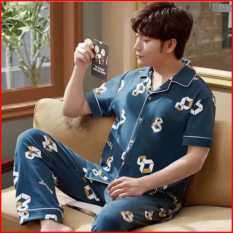 Pajamas Pria Dewasa Motif Kancing Cpk Kaos Katun Import Set Celana Panjang