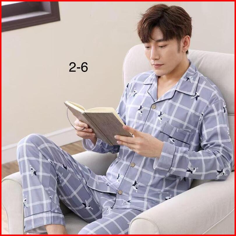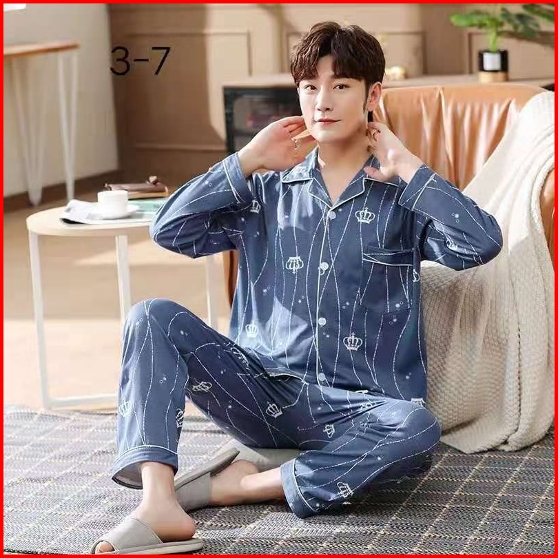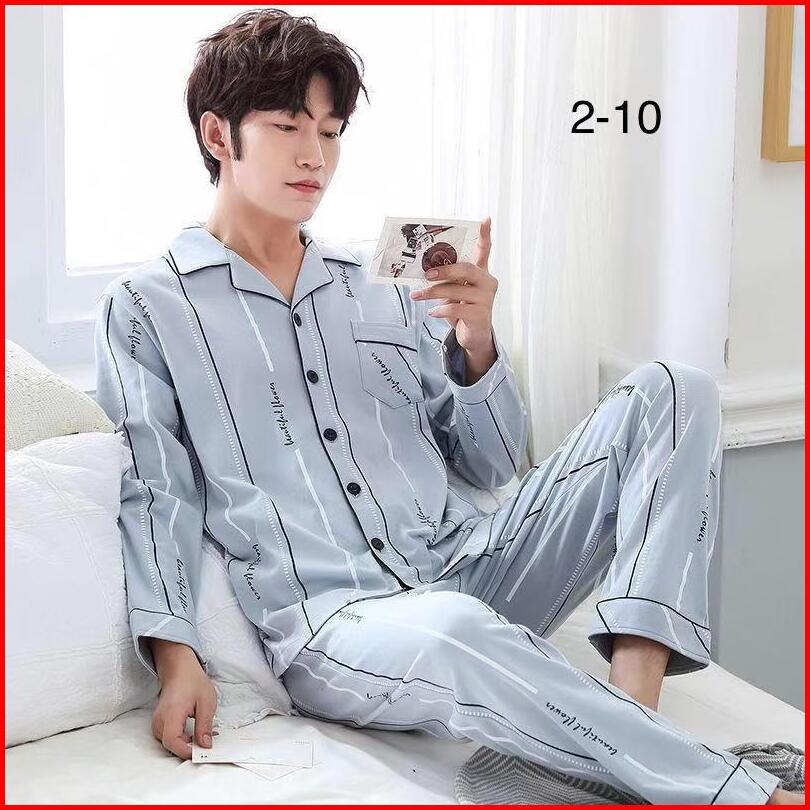 Piyama Pria Dewasa Katun Import Premium Setelan Lengan Panjang Celana Panjang Big Size L-3xl Motif Kancing Krah Terbaru