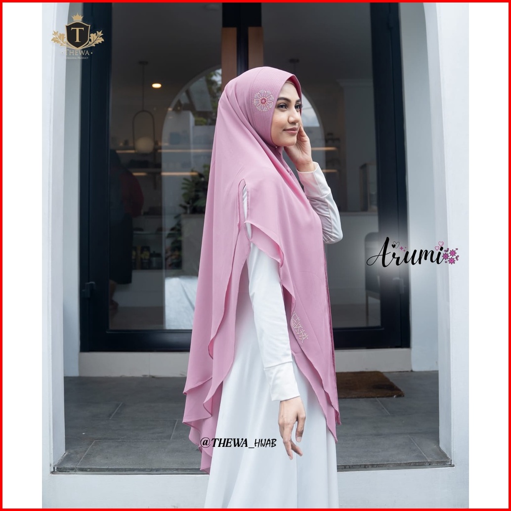 Thewa - Hijab Khimar Arumi Payet Belah 2 Layer Kerudung Seruty Babydoll