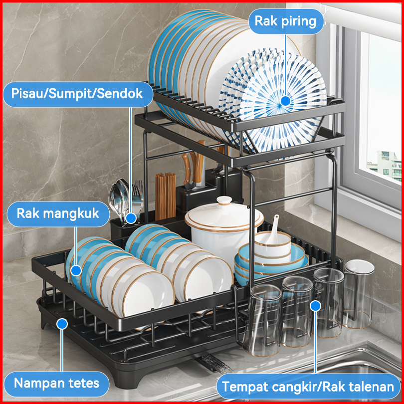 Rak Piring Wastafel Dapur Rak Penyimpanan Rak Dapur Dish Tiriskan Rak Perkakas Dapur Rak Rak Cangkir