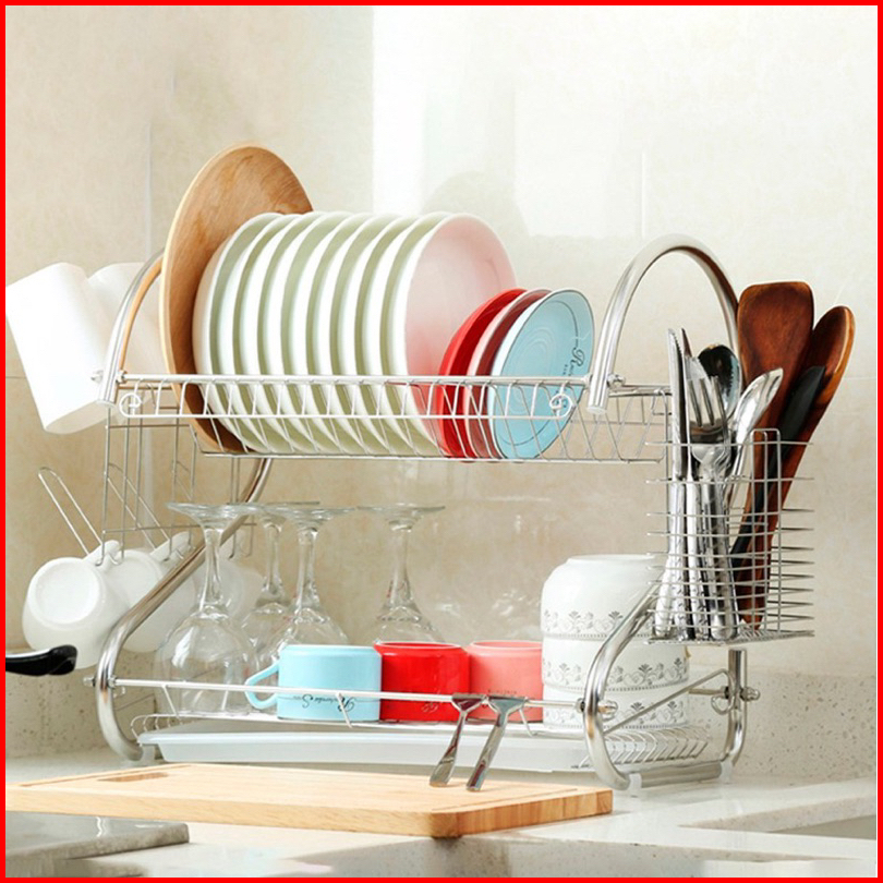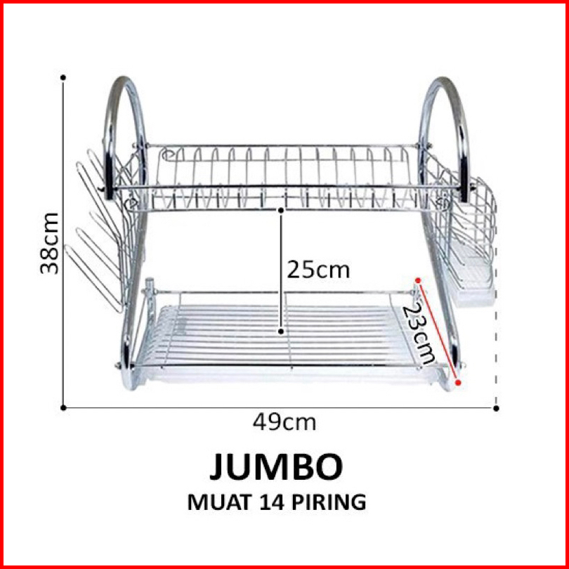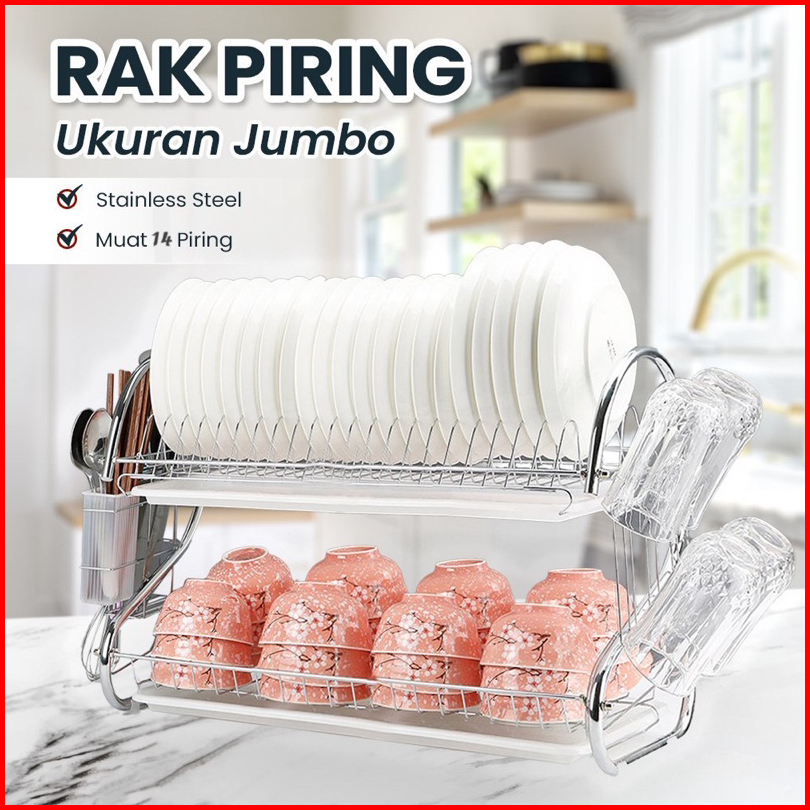 Baru Rak Piring Stainless 2 Susun Anti Karat Peralatan Dapur Besar Murah Premium Jumbo