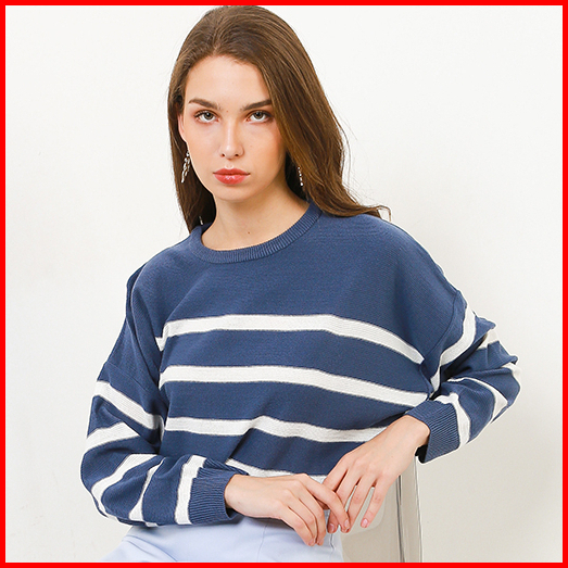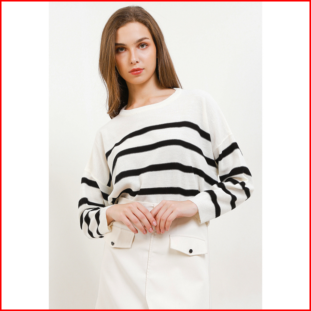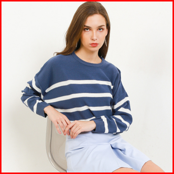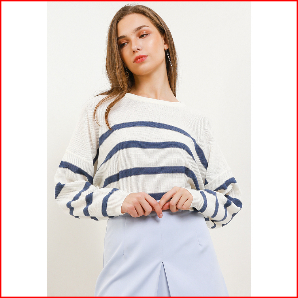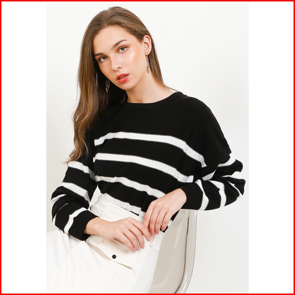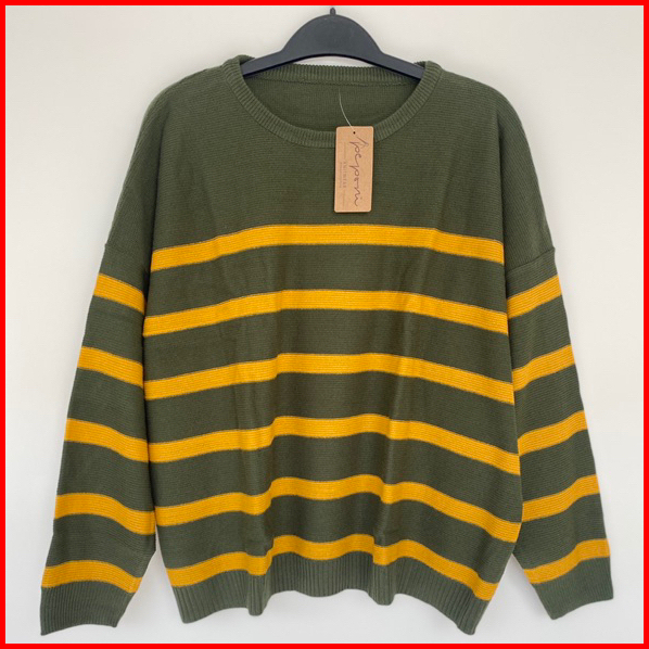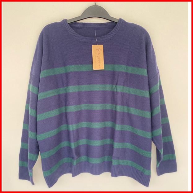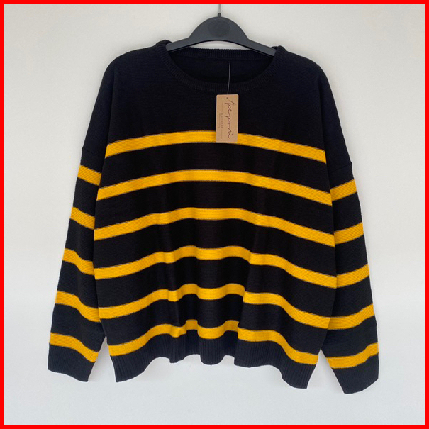 Peponi 1796 Sweater Rajut Oversize Wanita Crewneck Stripe Korean Premium Xxxl
