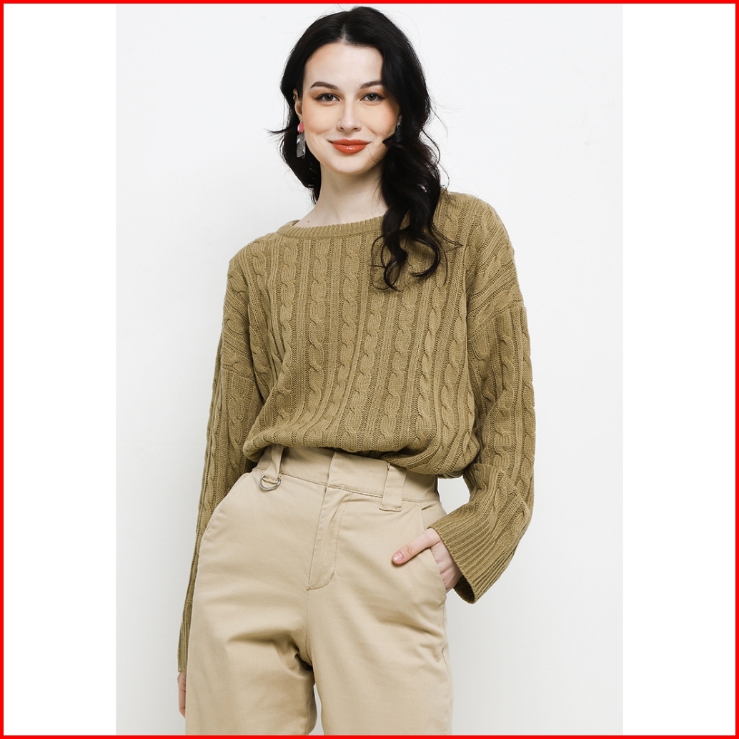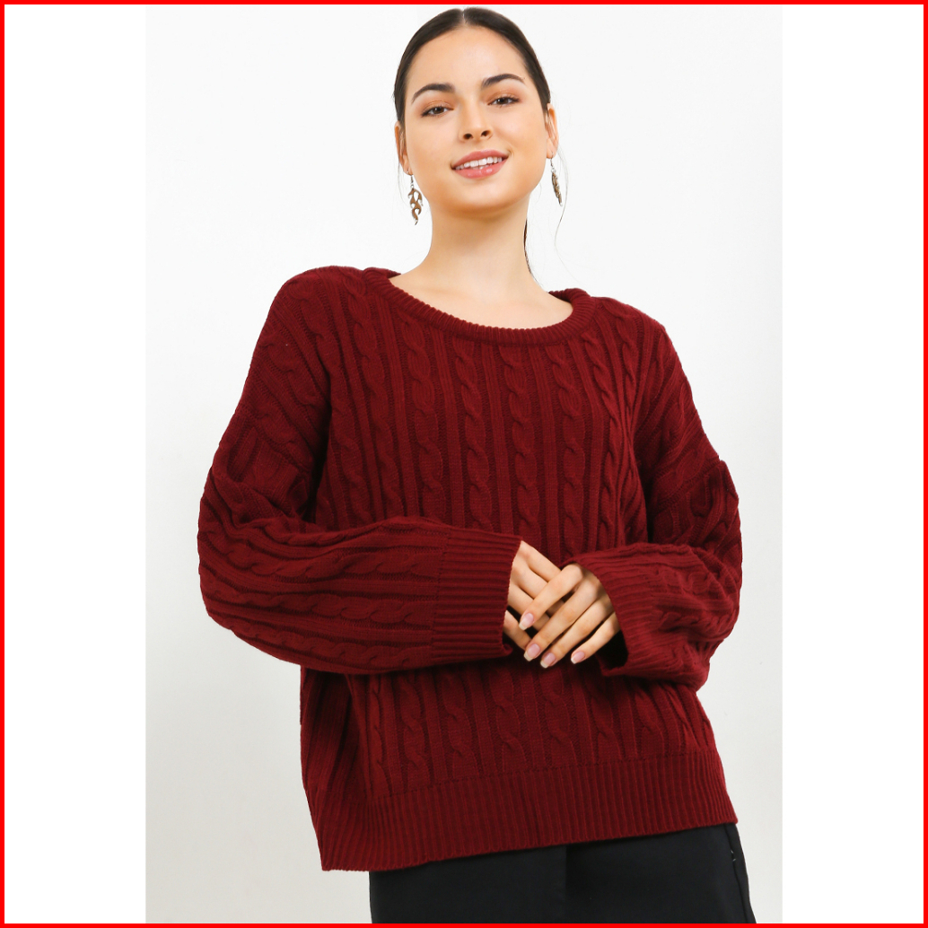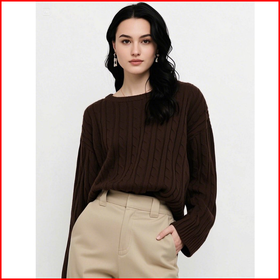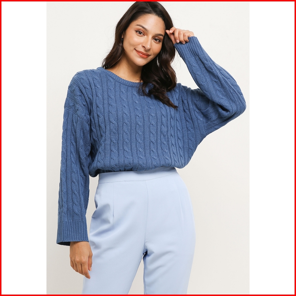 Peponi 1782 Sweater Rajut Wanita Cable Oversize Crew Neck Premium Korean