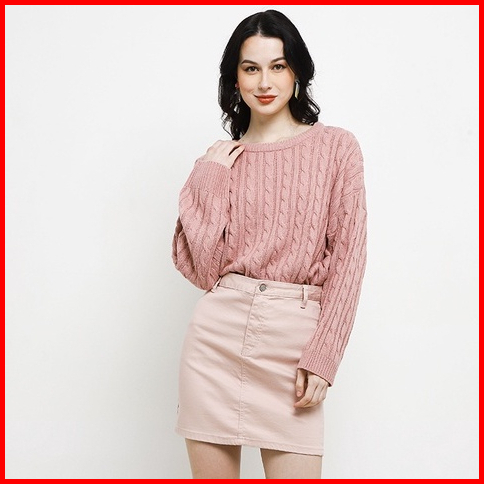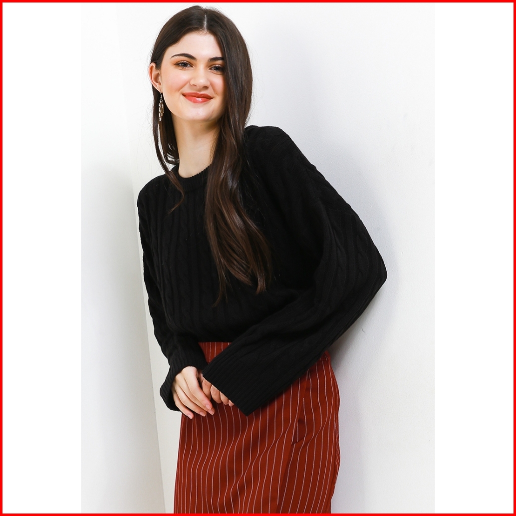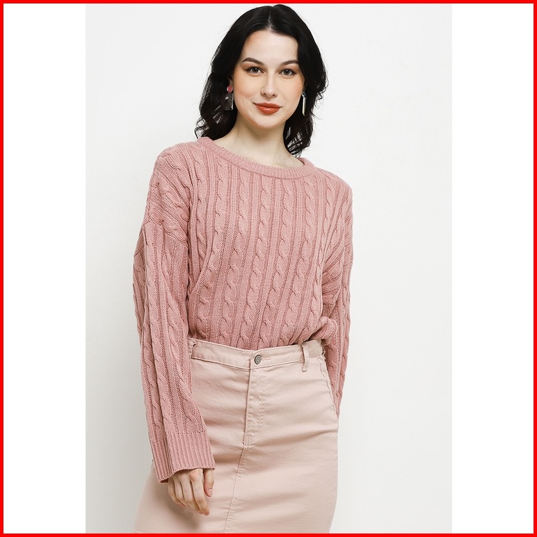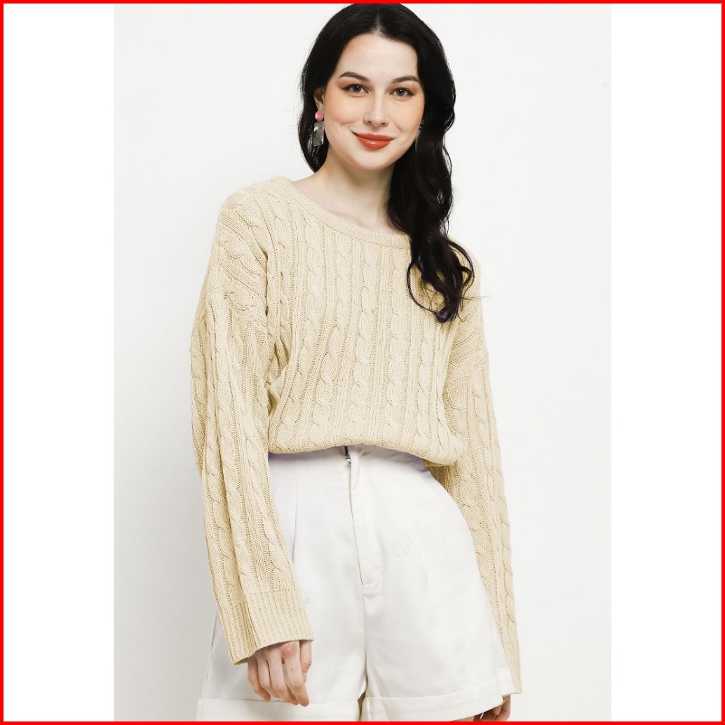 Peponi 1782 Sweater Rajut Wanita Cable Oversize Crew Neck Premium Korean