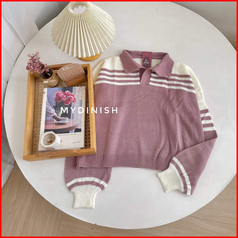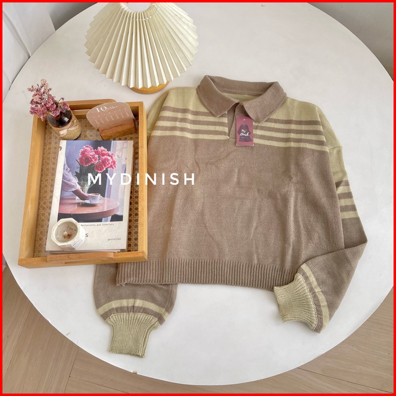 Asmiranda Polo Sweater Rajut Wanita Berkerah Motif Stripi