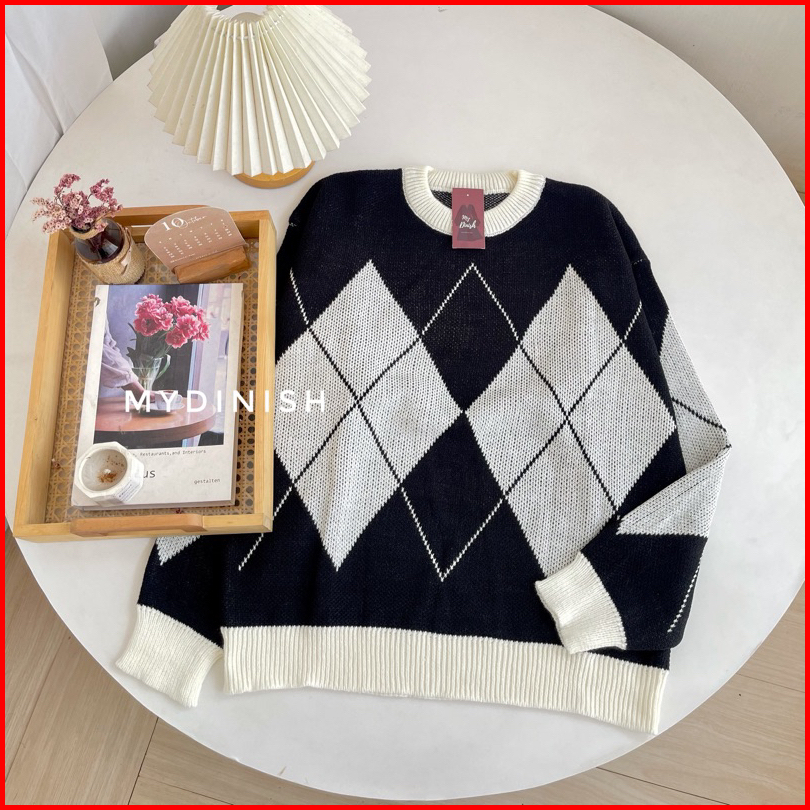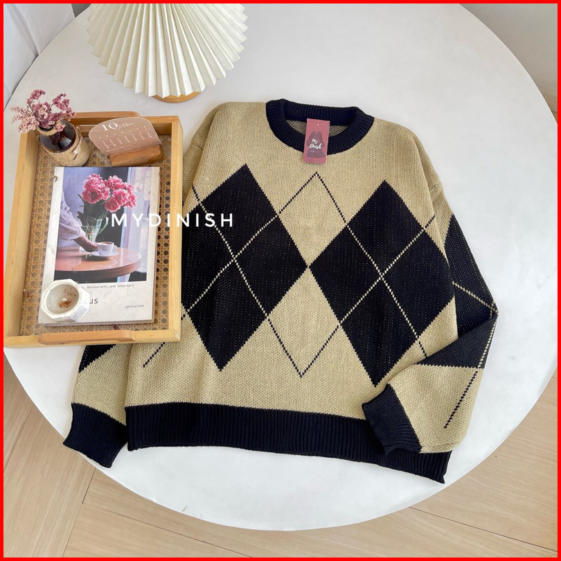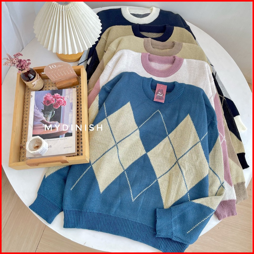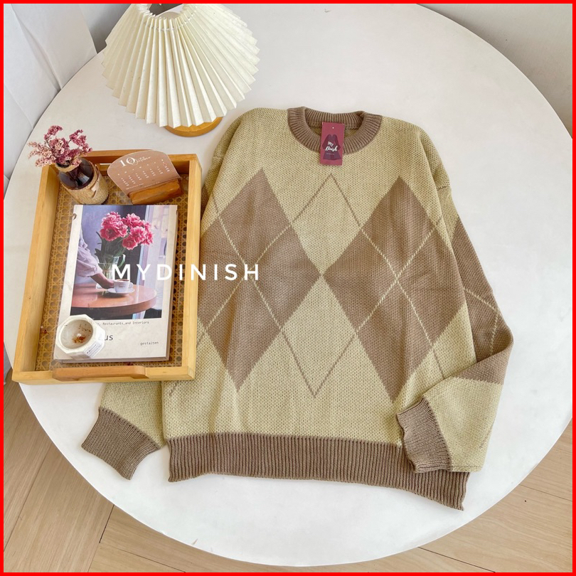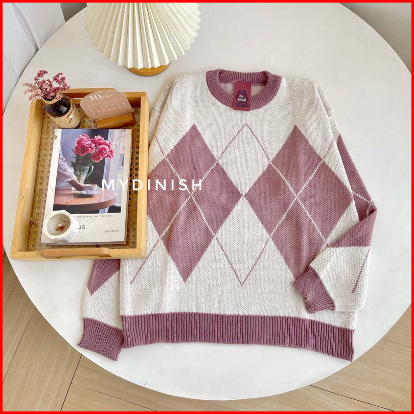 Mulan Sweater Rajut Wanita Motif Diamond Korean Style