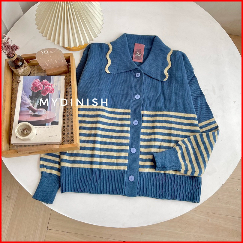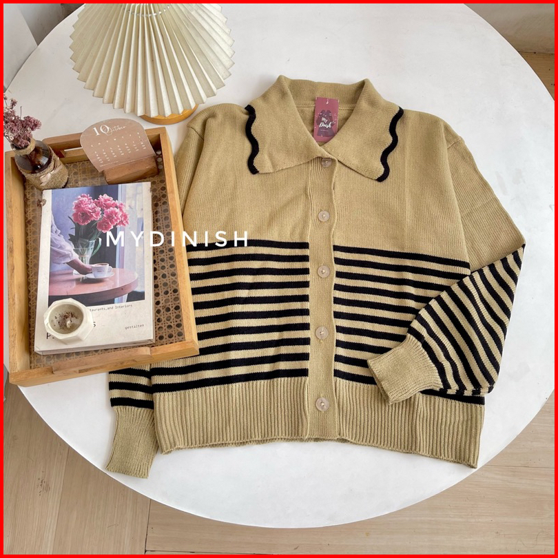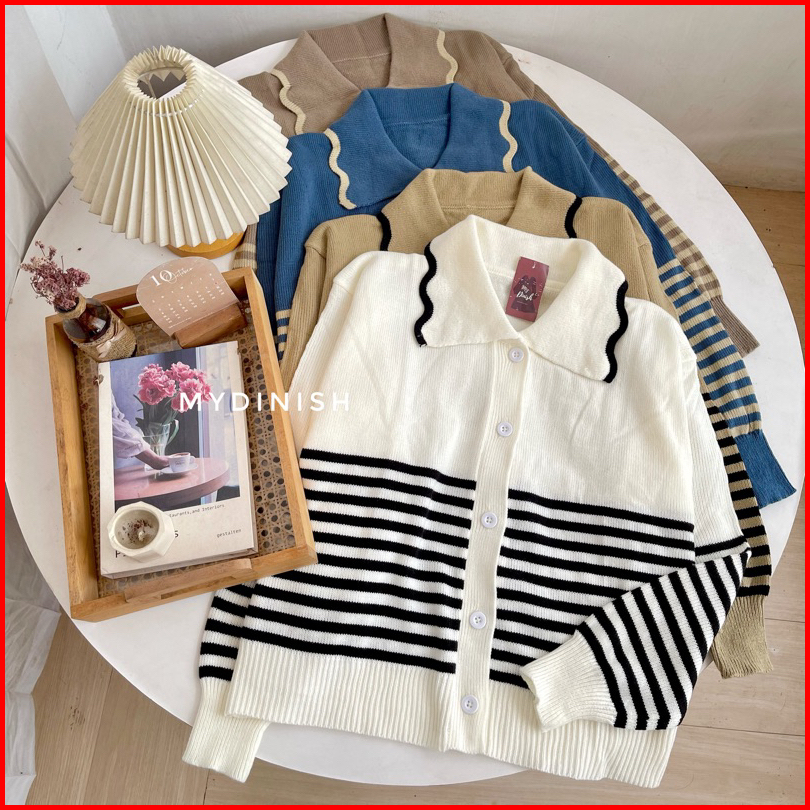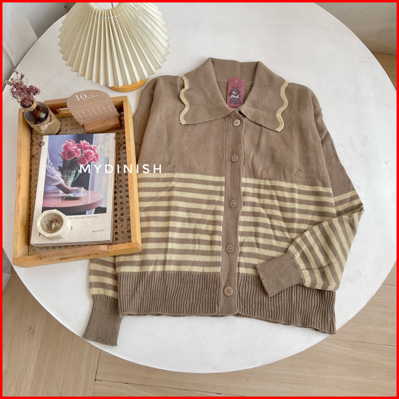 Nayomi Cuties Cardy - Cardigan Rajut Wanita Motif Garis Korean Style