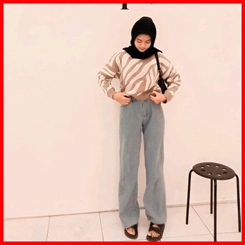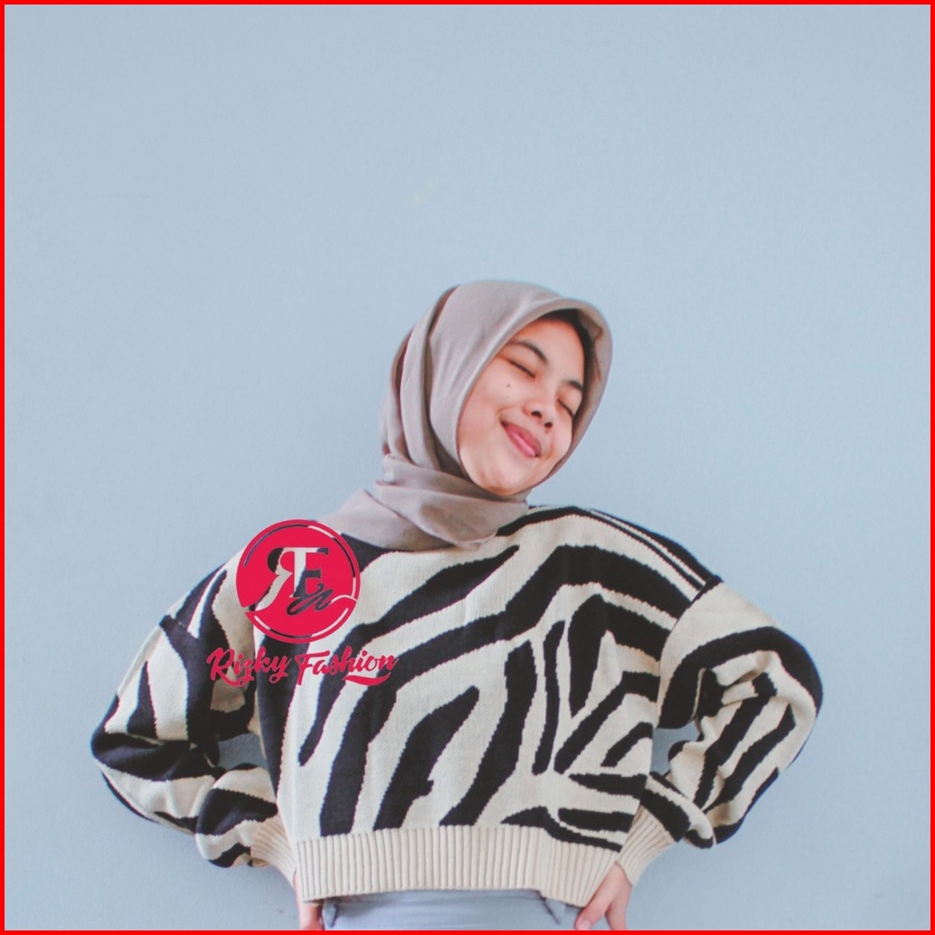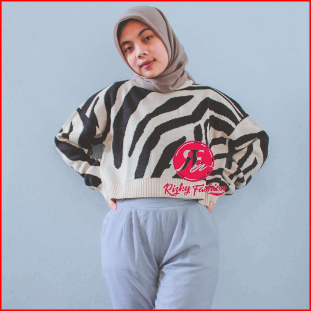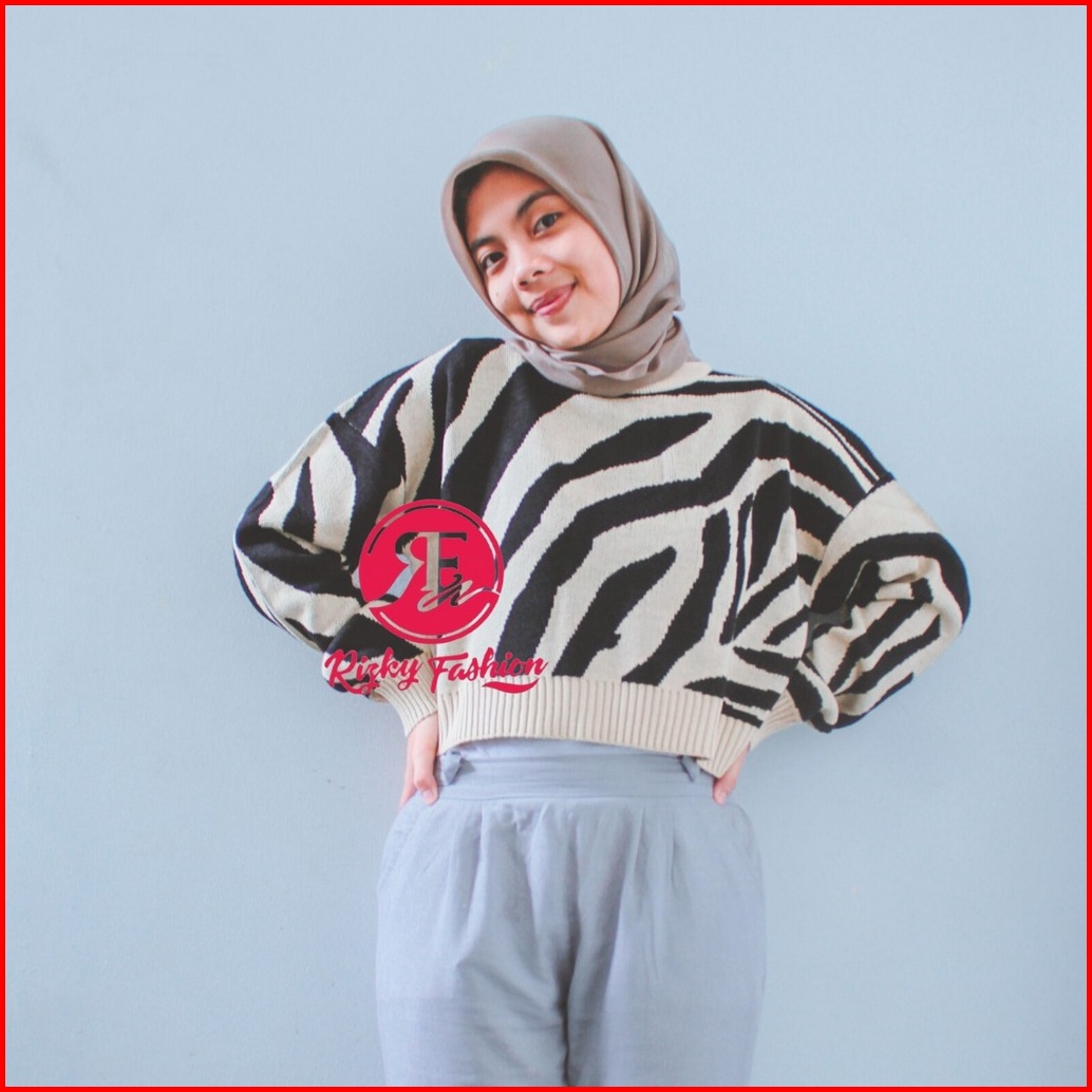 Arabele Zebra Crop Blouse Rajut Atasan Wanita