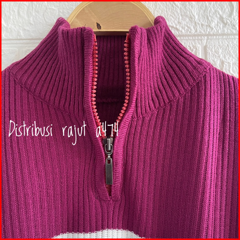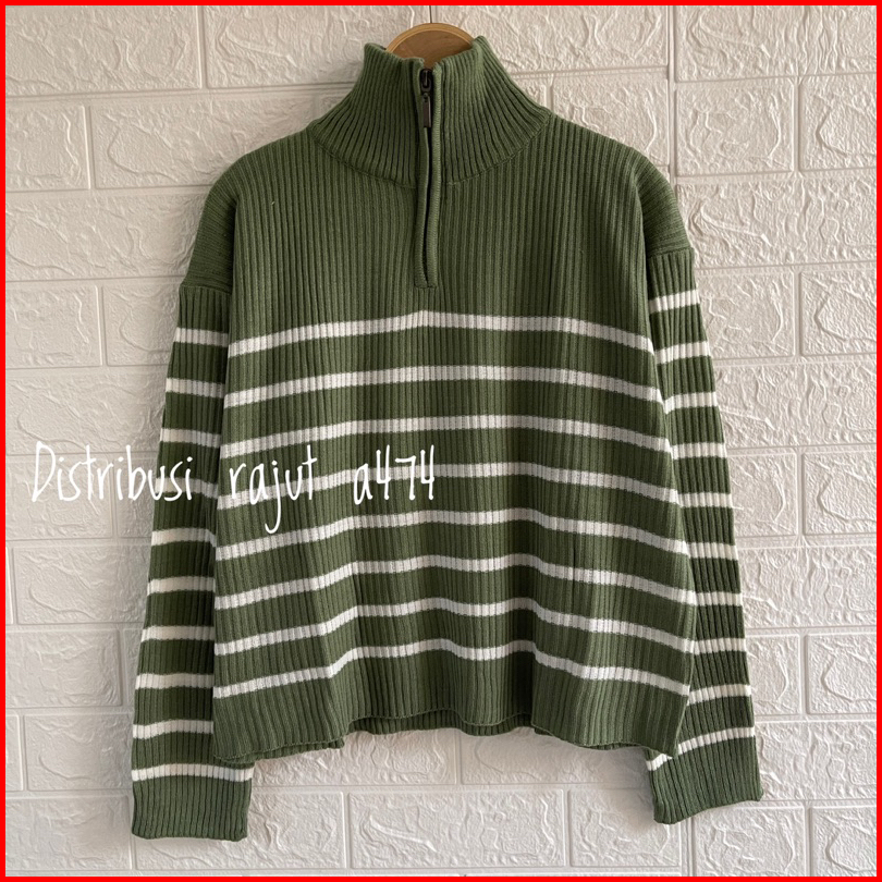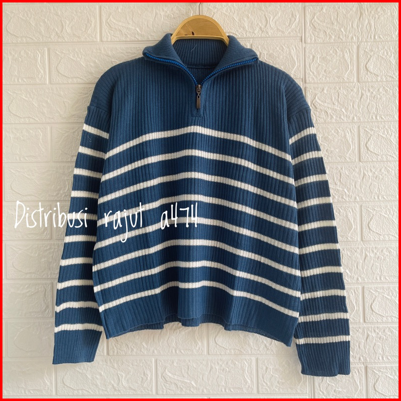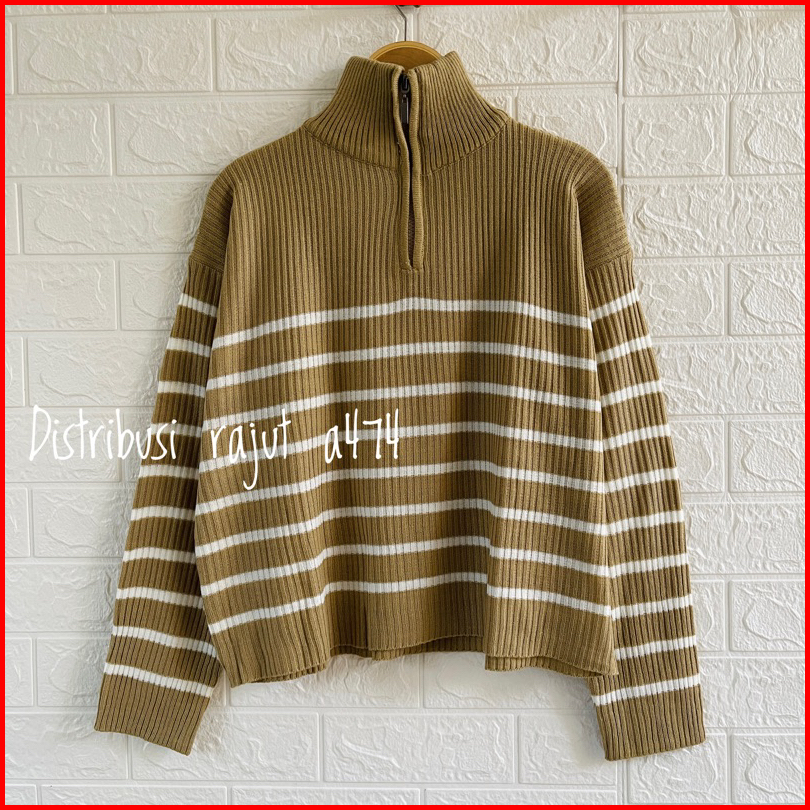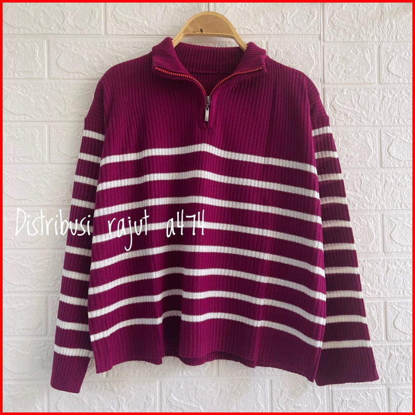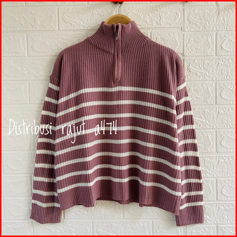 Kimy Sweater Rajut Zipper Stripe Motif Blaster Atasan Lengan Panjang Wanita