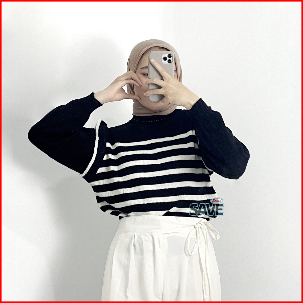 Geovany Stripe Knit - Rajut Atasan Wanita
