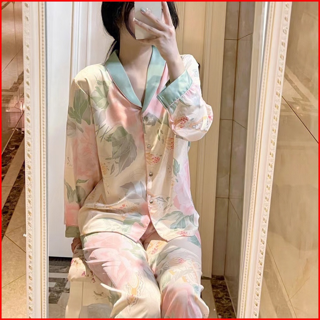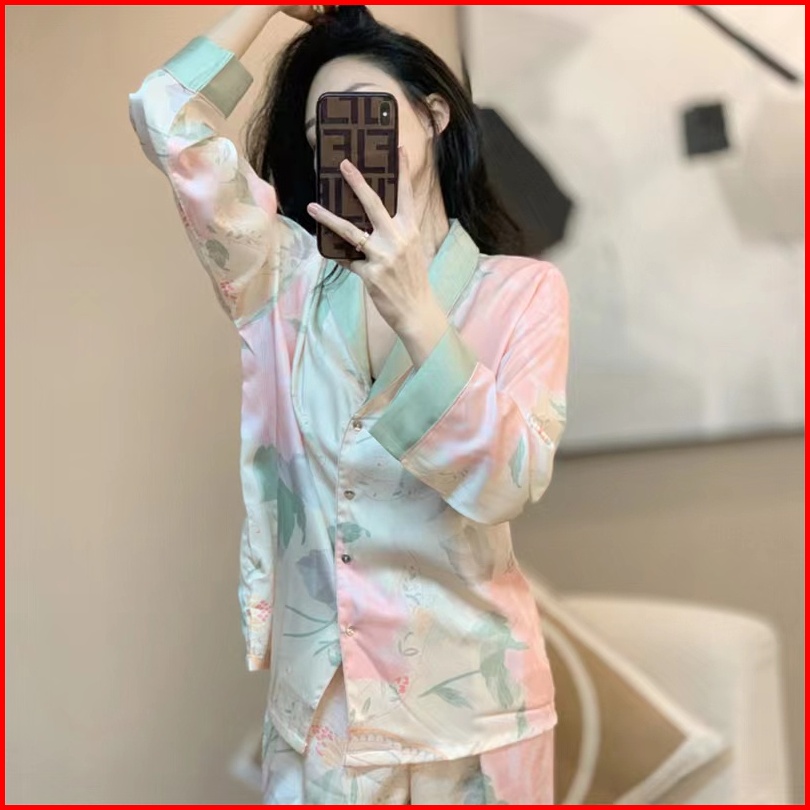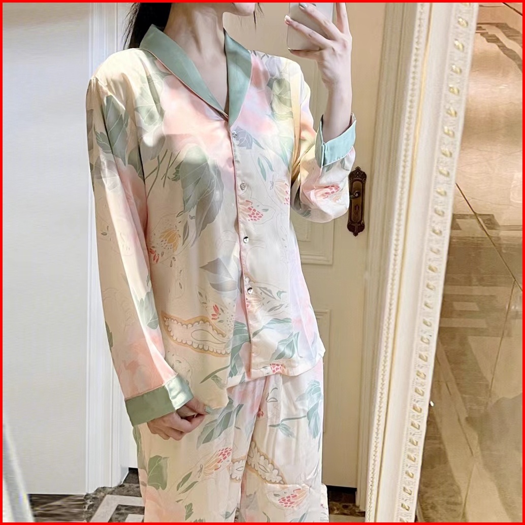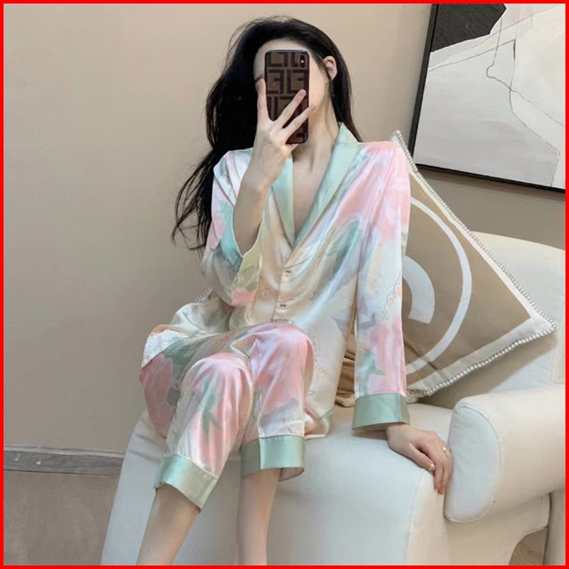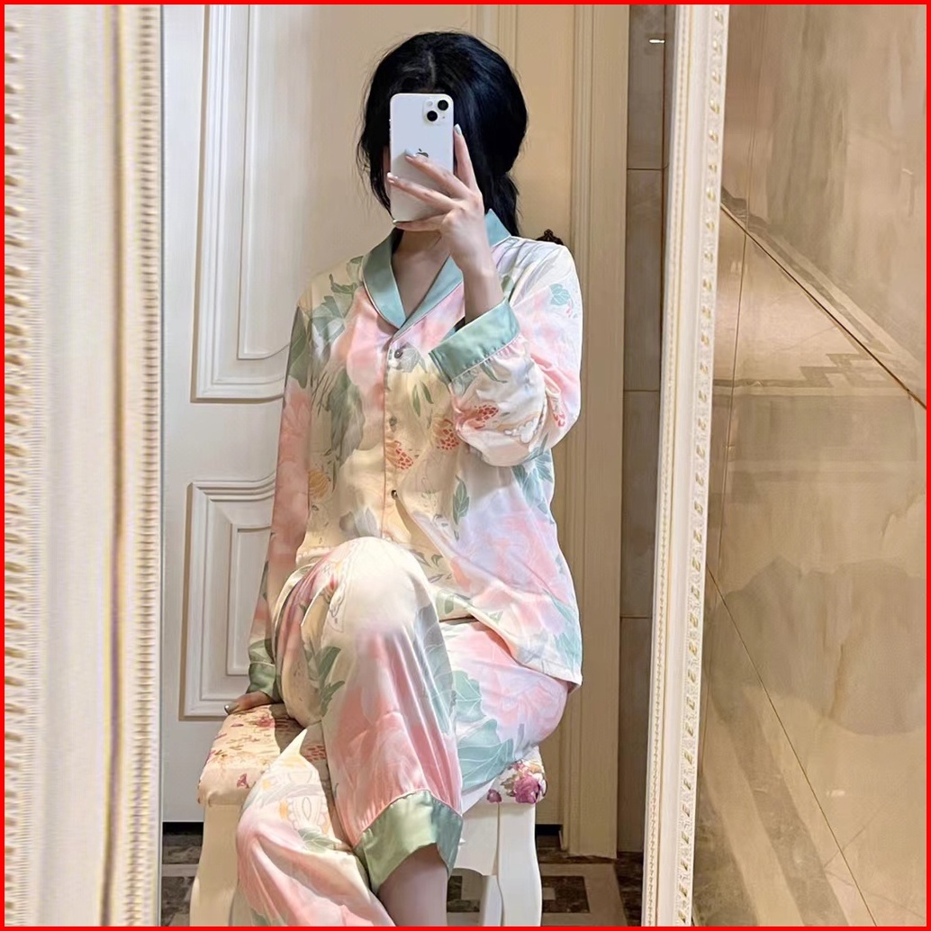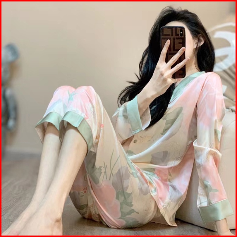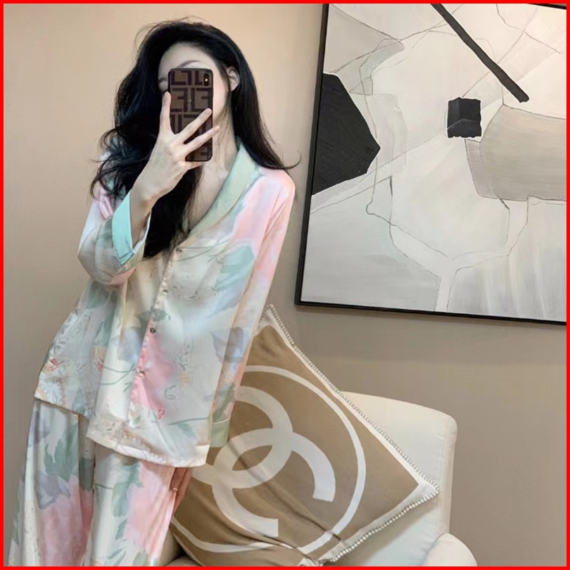 2025 Korean Panjang Tidur Baru Cardigan Pants Ice Silk Pajamas Household Suit