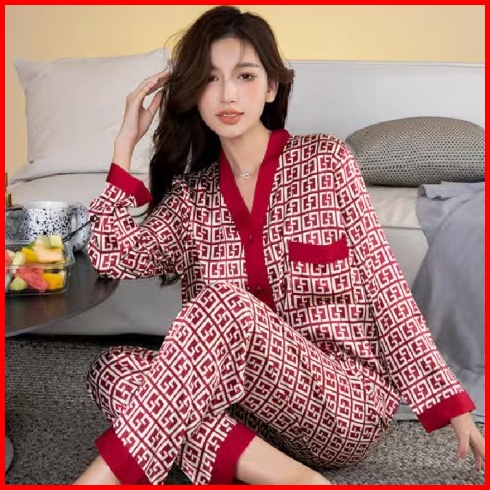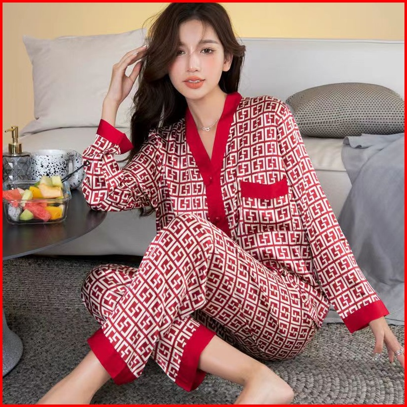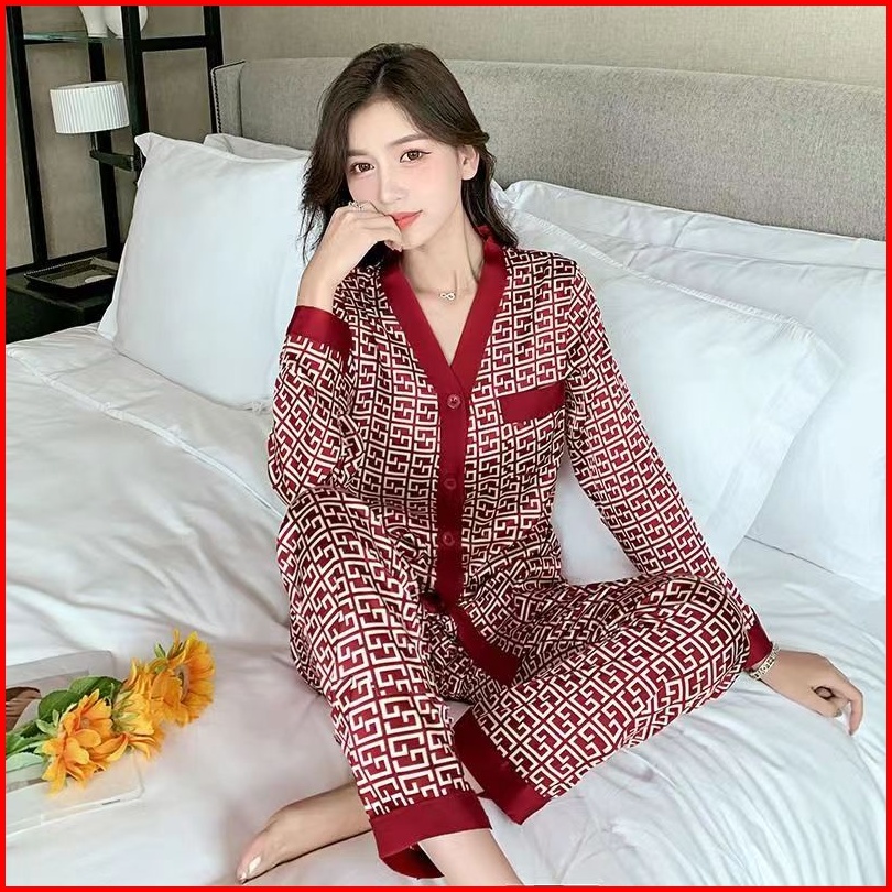 2025 Pakaian Rumah Piyama Sutra Es Lengan Panjang Baru