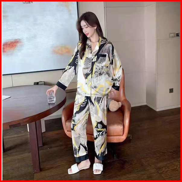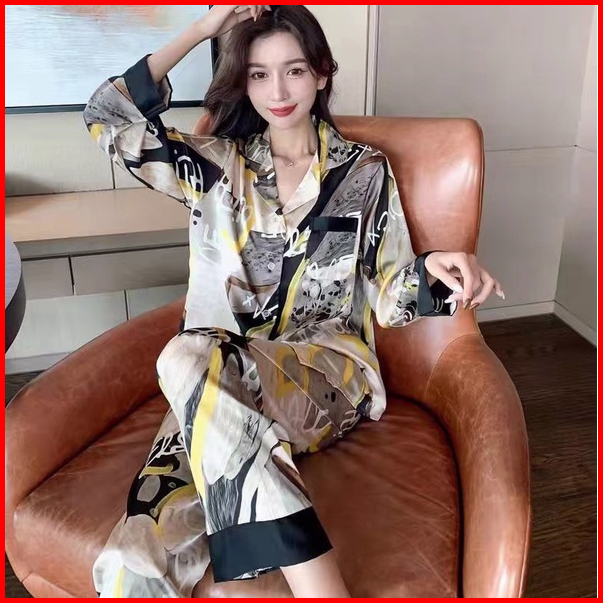 2023 Baru Es Sutra Piyama Wanita Lengan Panjang Versi Korea Kartun Lucu Bisa Dipakai Di Luar Sutra Asli Layanan Rumah Su
