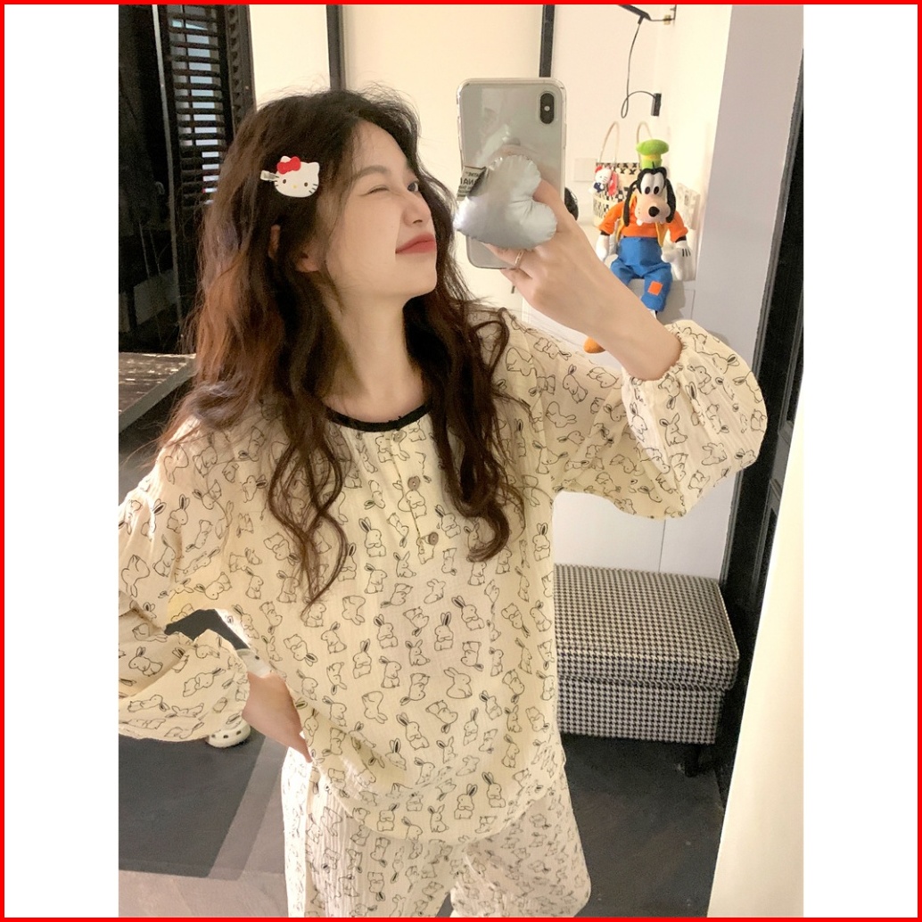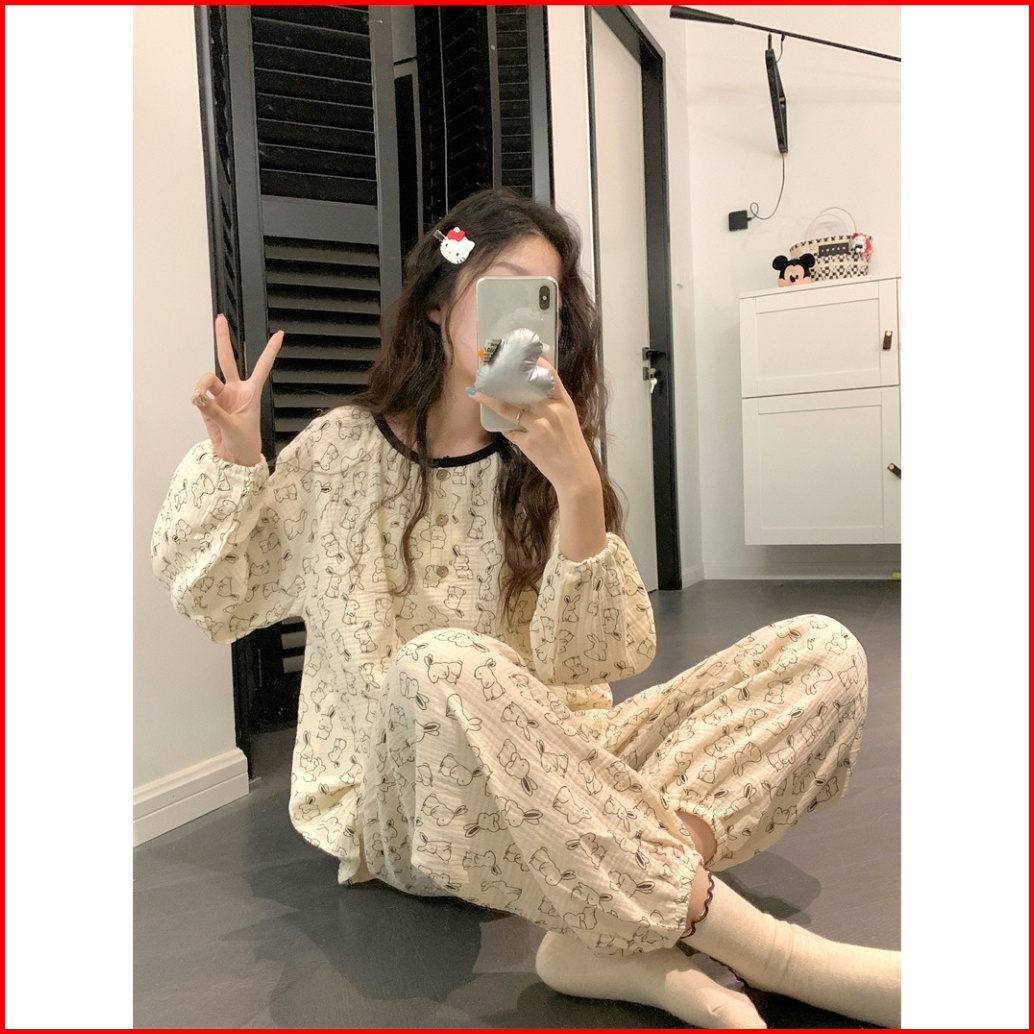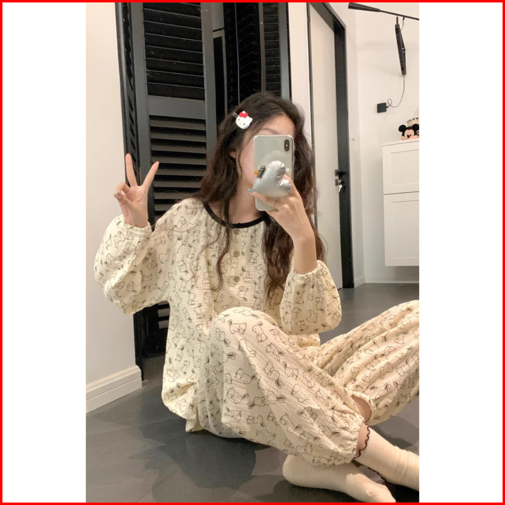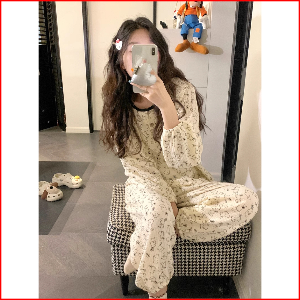 Piyama Set Baju Tidur Bs-7176 Setelan Lengan Panjang Celana Panjang Baju Rumah Katun Sleepwear Kartun Mimon Home