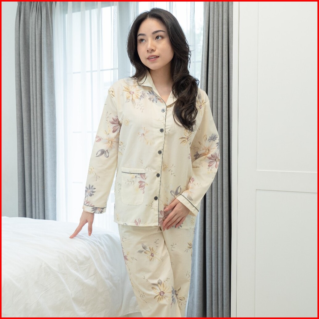 Aykowear Baju Tidur Piyama Wanita Yellow Chrysant