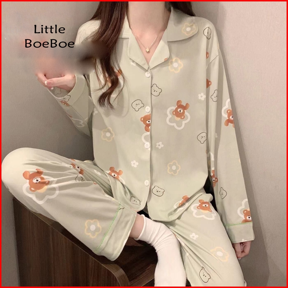 Little Boeboe - Sophie Piyama Baju Tidur Wanita Dewasa Jumbo Premium Katun Bamboo Kerah Collar Cewek Pajamas