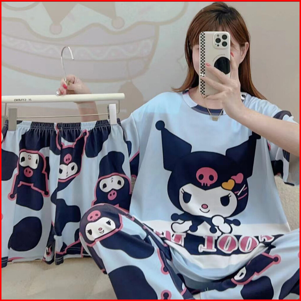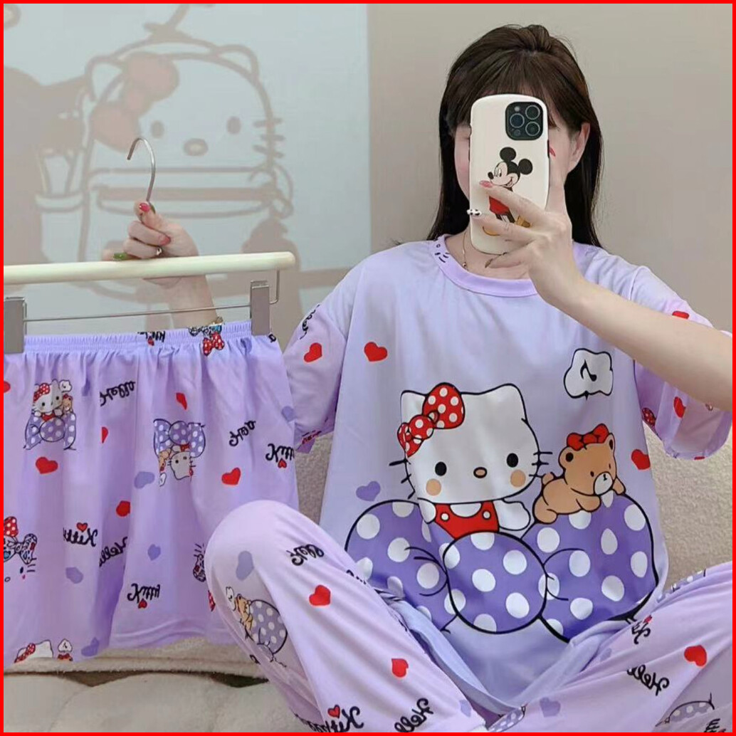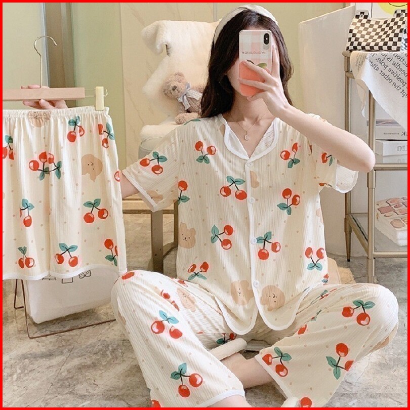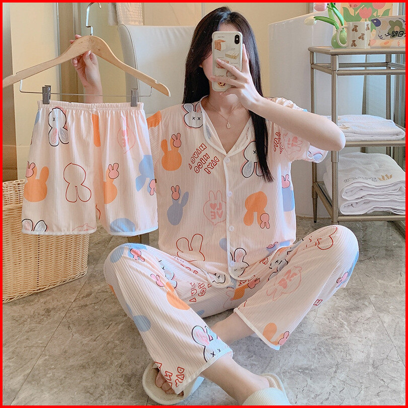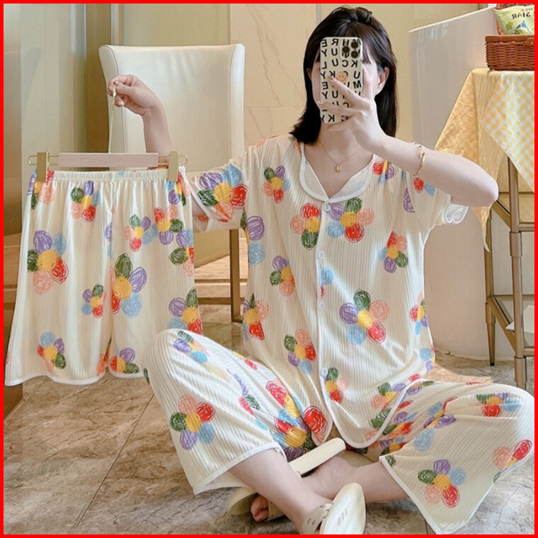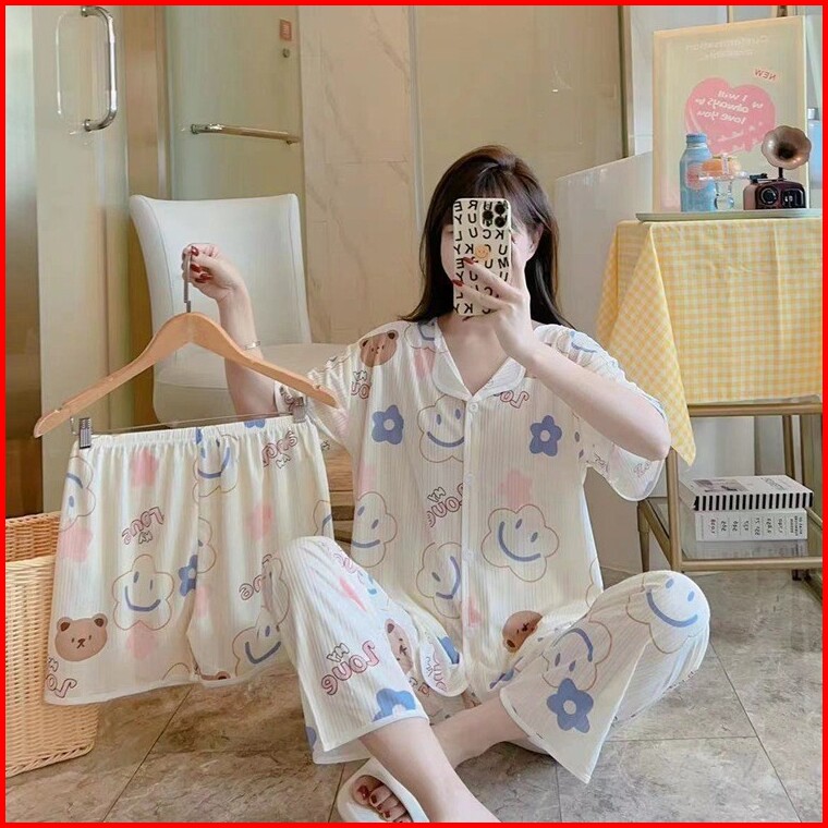 Baju Tidur Wanita Piyama 3 In 1 Wanita Set Celana Pendek Celana Panjang Piyama Youbi
