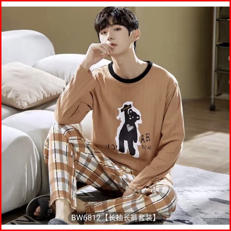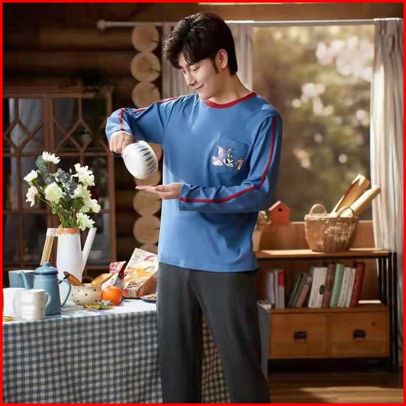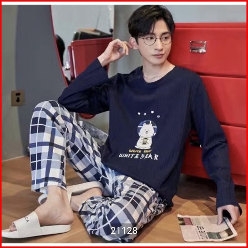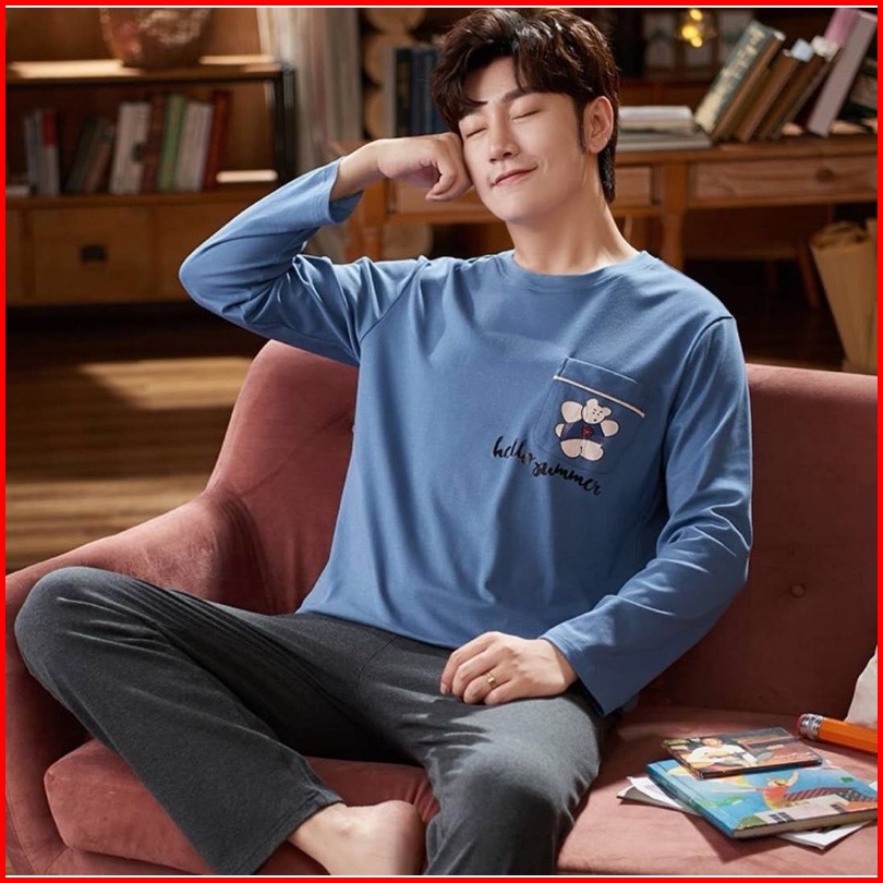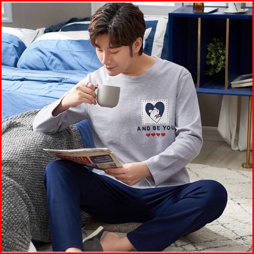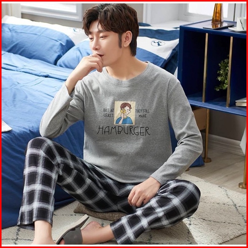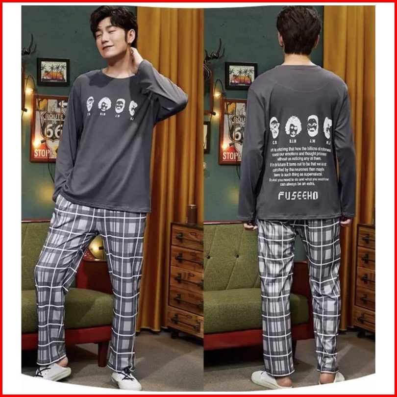 Piyama Cowok Remaja Abg Kaos Katun Import Premium Setelan Celana Panjang Motif Grey Big Size L-3xl Terbaru