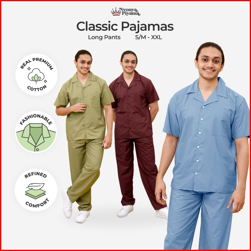 Nyonya Piyama Katun Classic Signature Set Celana Panjang Polos Pria