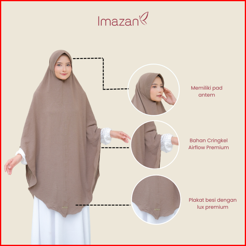 Imazan Khimar Crinkle Airflow Pad Antem Kerudung Panjang Jumbo Jilbab Syari Meena Series