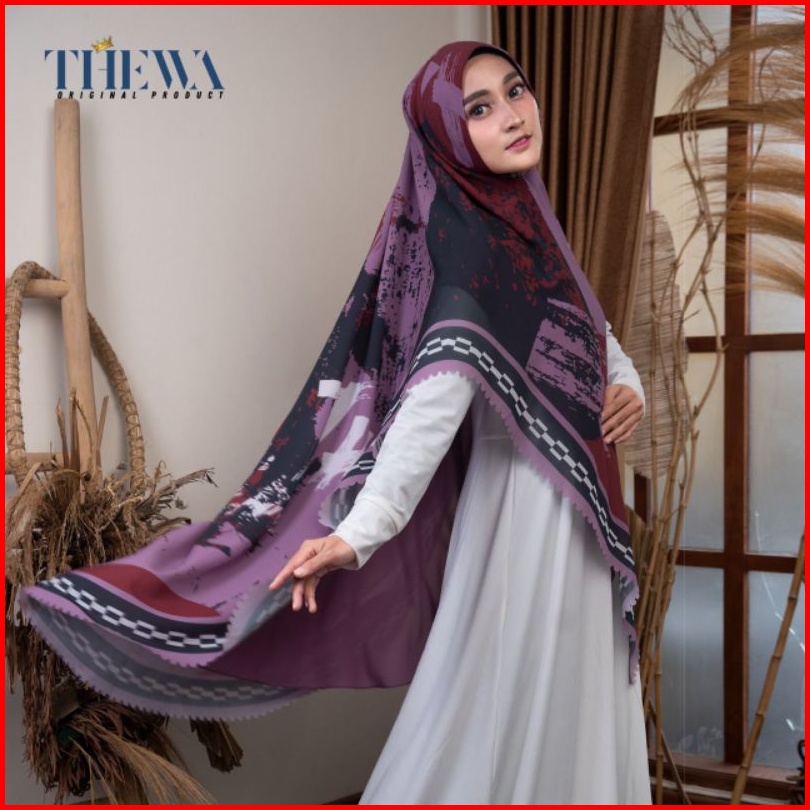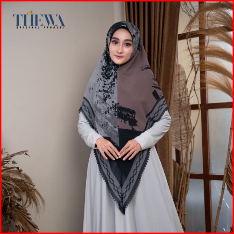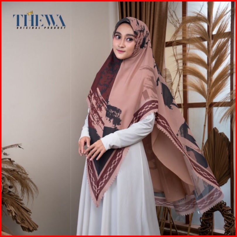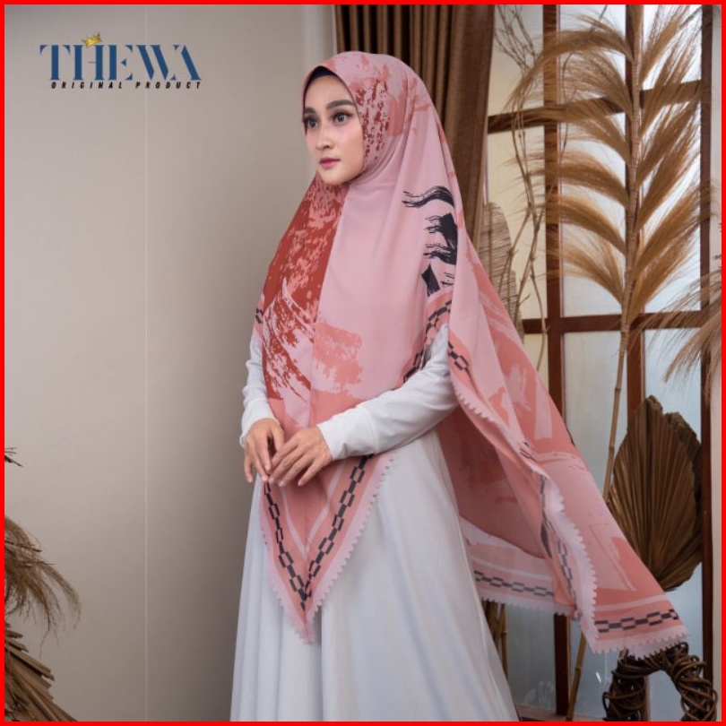 Thewa Khimar Printing Laser Jilbab Motif Ceruty Babydoll Kerudung Syari Printing Soft Pet Antem