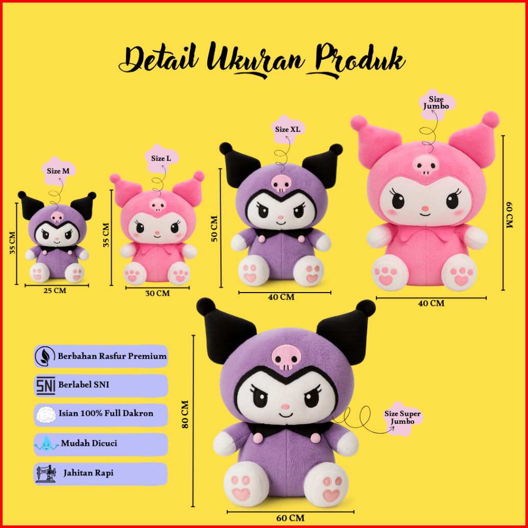 Boneka Sanrio Karakter Kuromi Melody Ungu Pink Putih Rainbow Cute Bahan Lembut Kualitas Sni