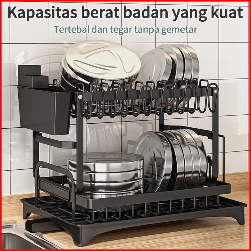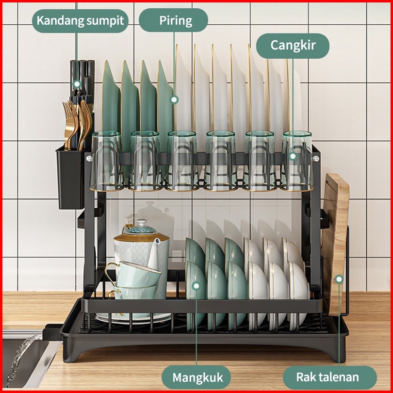 Rak Piring Dapur Stainless Steel Penyimpanan Rak Pengering Piring Rak Mangkuk Piring