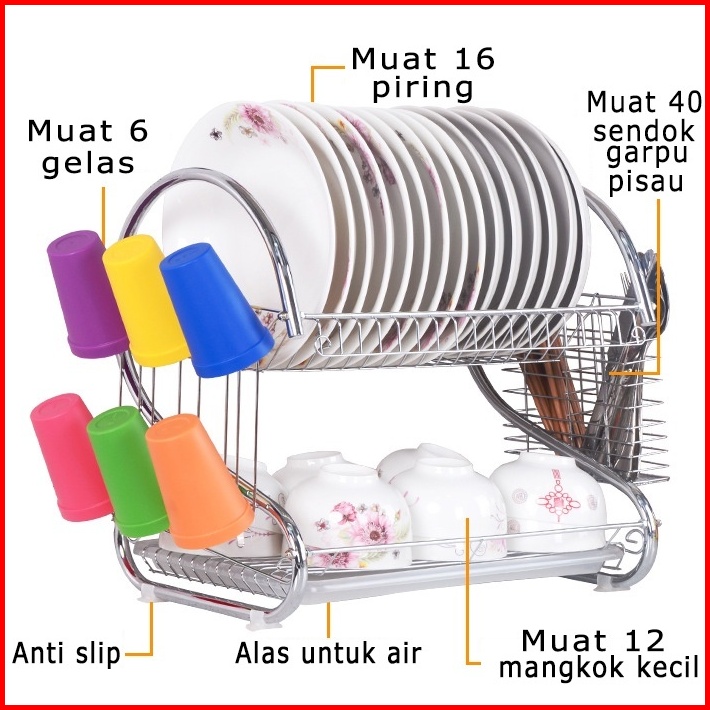 Perabot Rak Piring Stainless 2 Susun Rak Peralatan Dapur 2 Tingkat Termurah