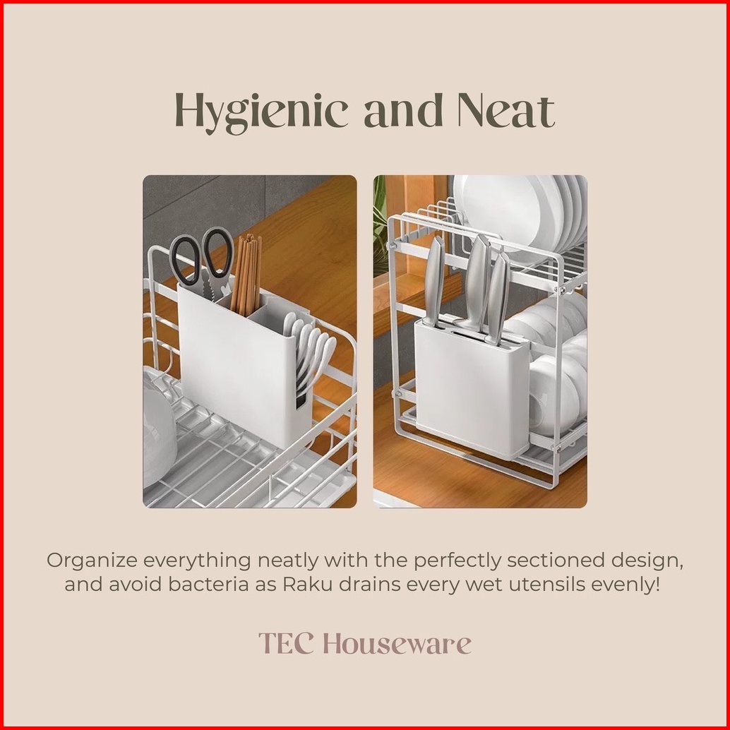 Produk Rumah Tangga Tec Raku Rak Piring Nordic Style Bertingkat Rak Dapur Rak Wastafel Peralatan Dapur Kokoh Anti Karat