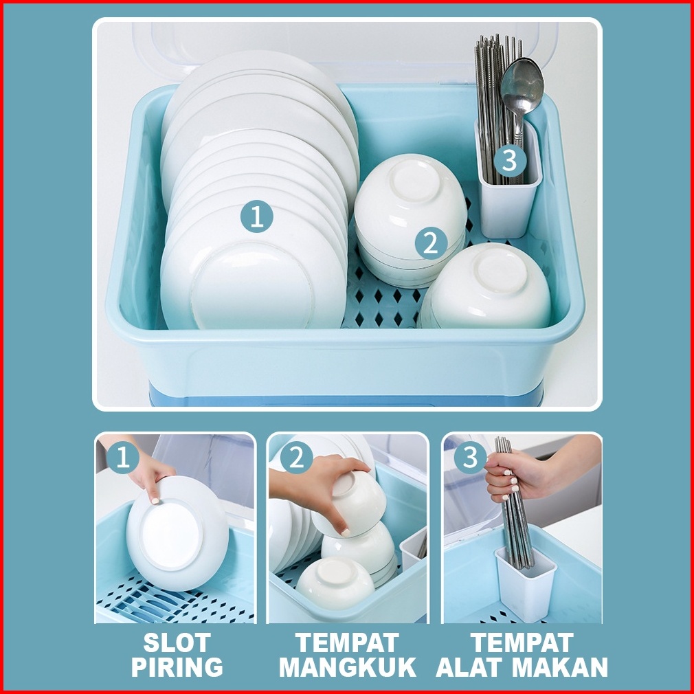 Rak Piring Plastik Tempat Alat Makan Rak Pengering Mangkok Sendok Rak Dapur - Rd028m