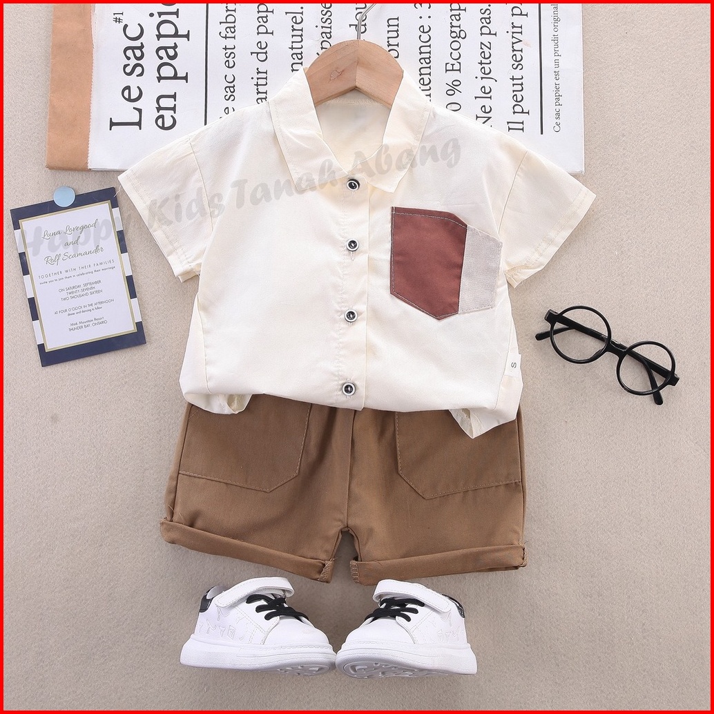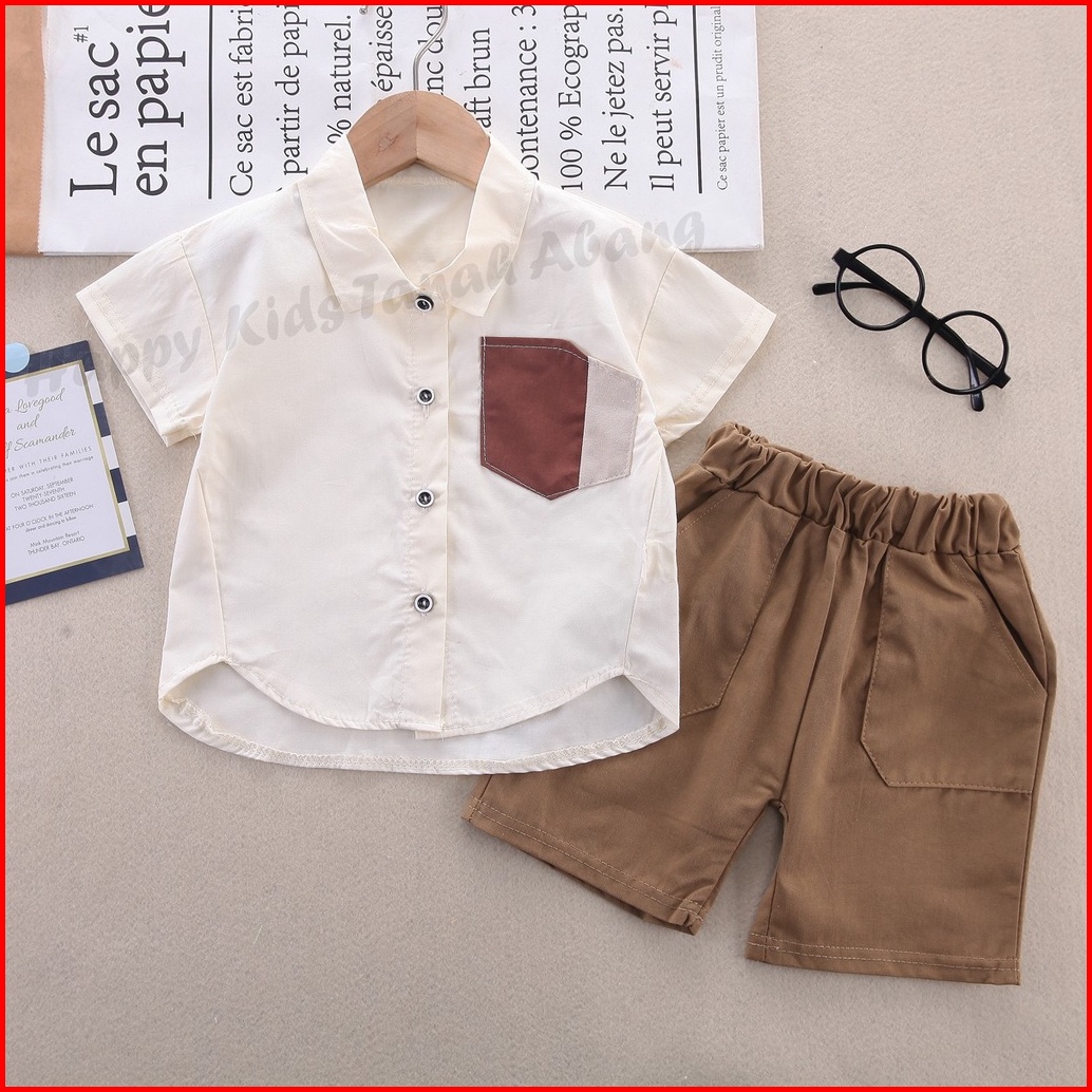 Setelan Baju Anak Laki-laki Baju Anak Cowok Kekinian Pakaian Anak Laki-laki Bahan Katun Berkualitas Setelan Kemeja Anak