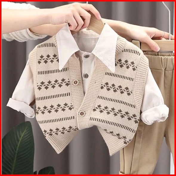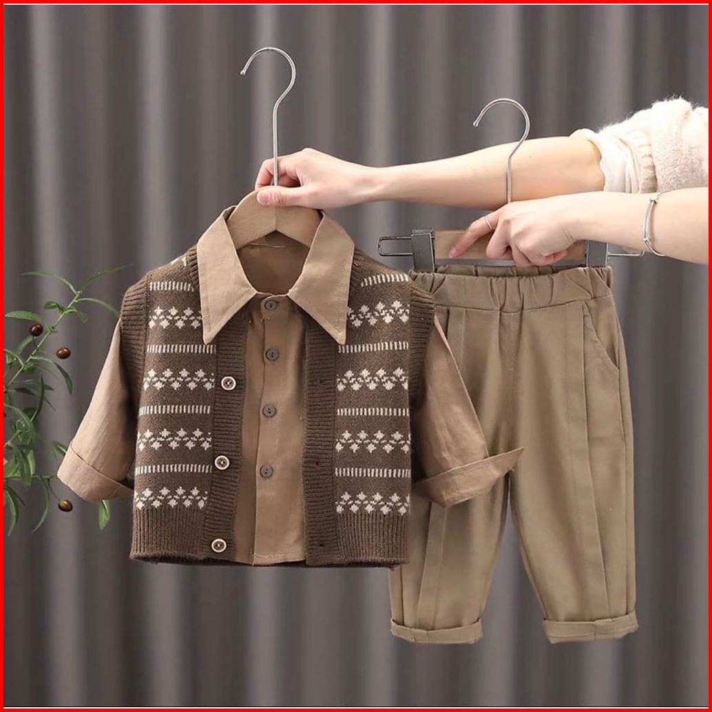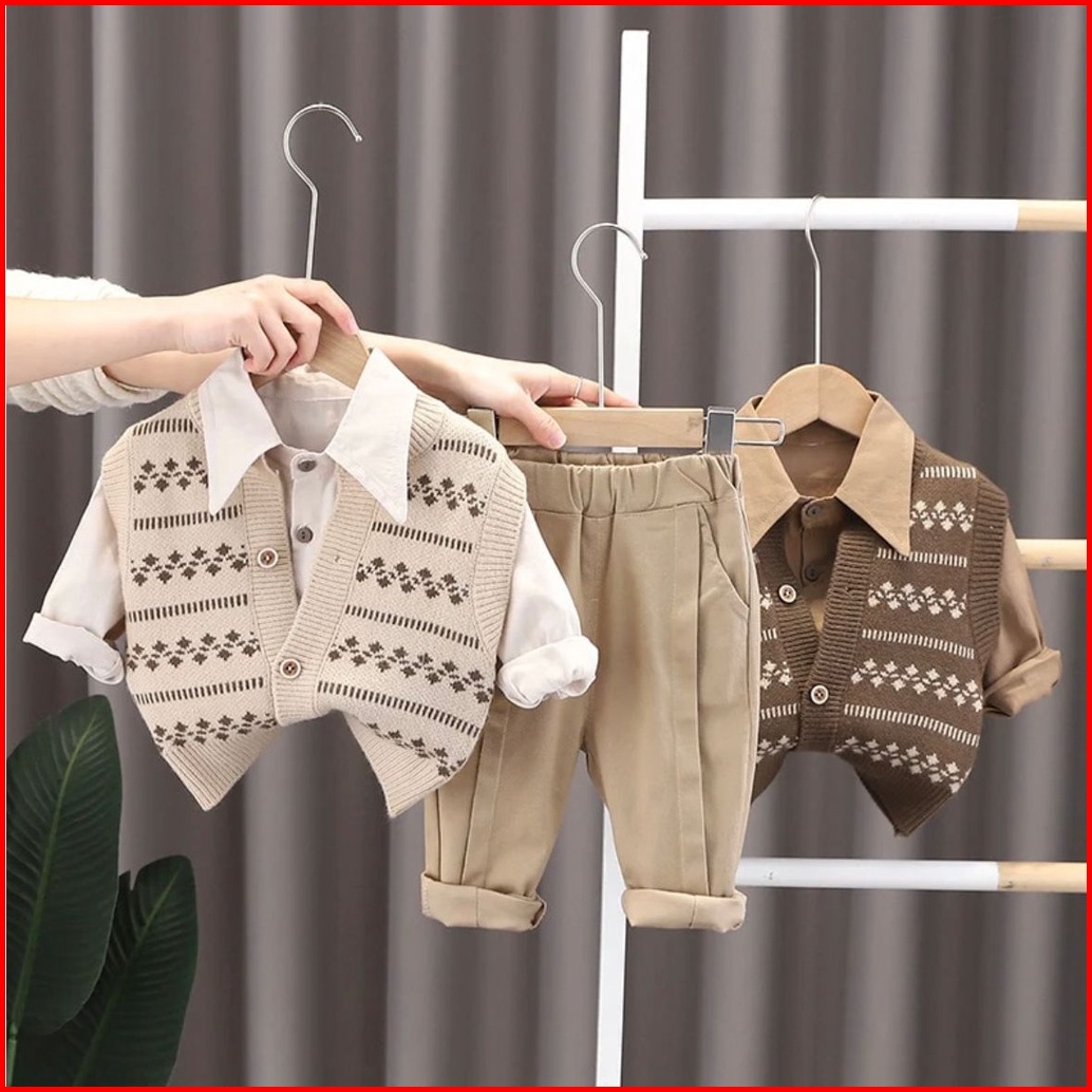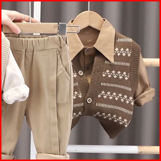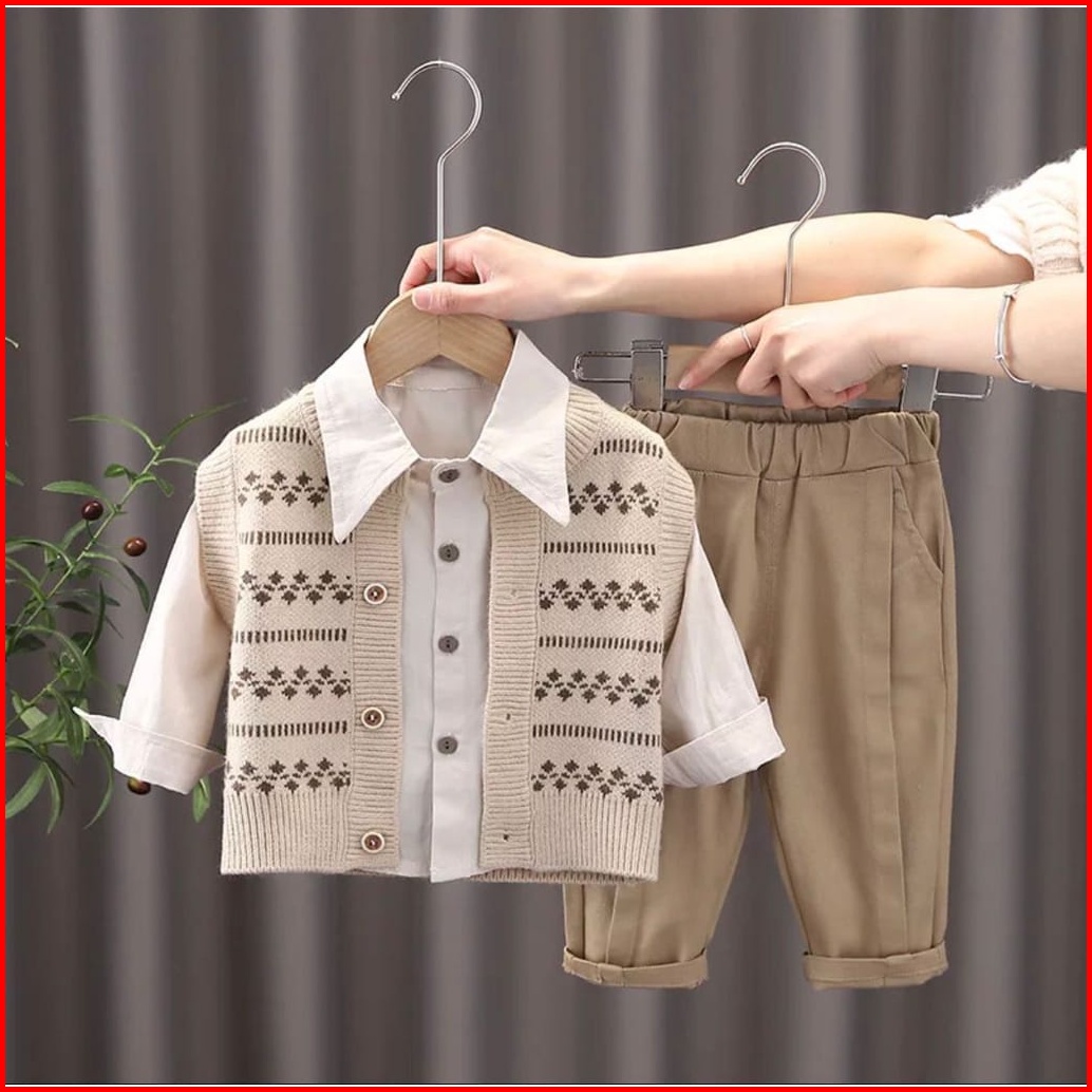 Setelan 3in1 Rajut Daun Pakaian Anak Laki-laki Baju Anak 1-5 Tahun