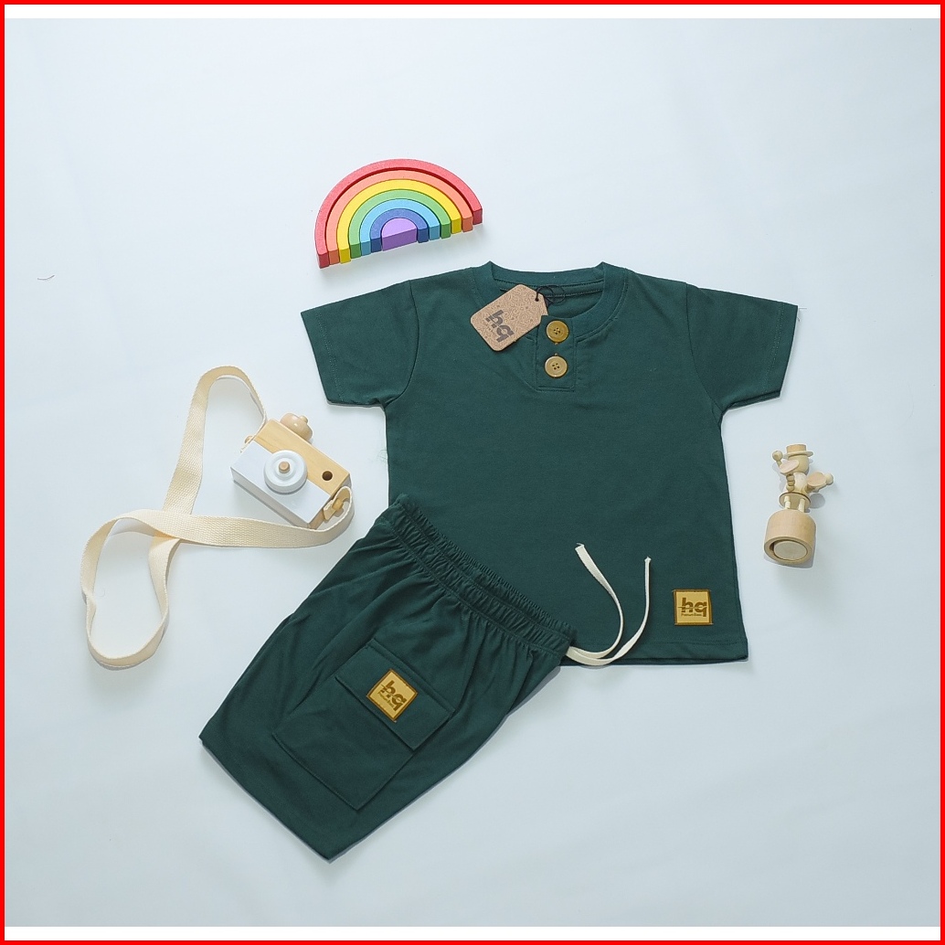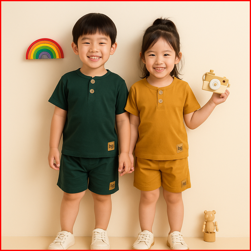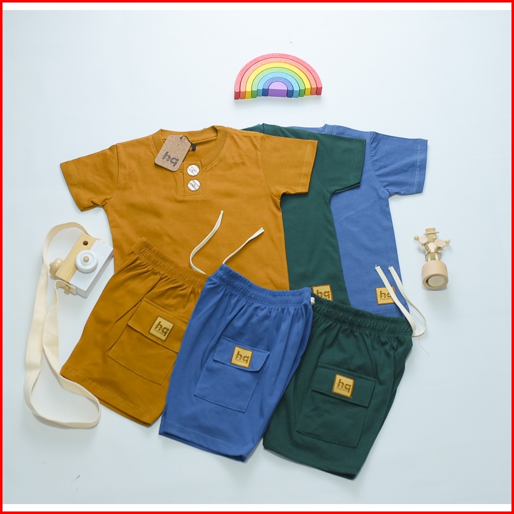 Setelan Baju Anak Laki Laki Perempuan Polos Kancing 1-8 Tahun Katun 30s Lengan Pendek