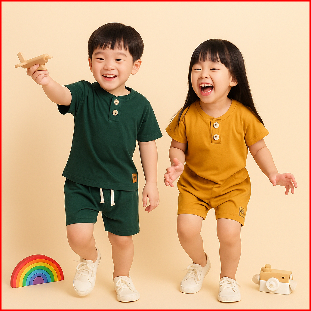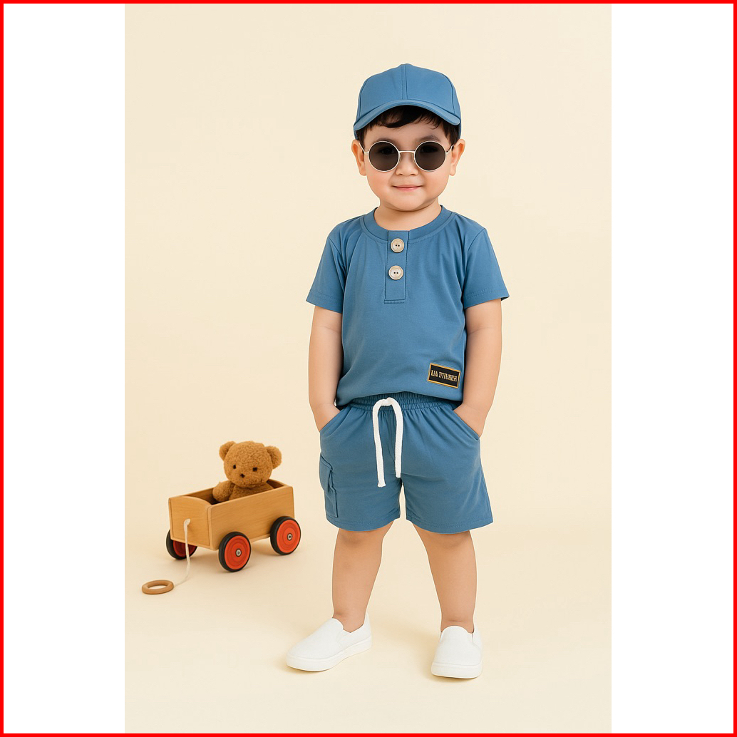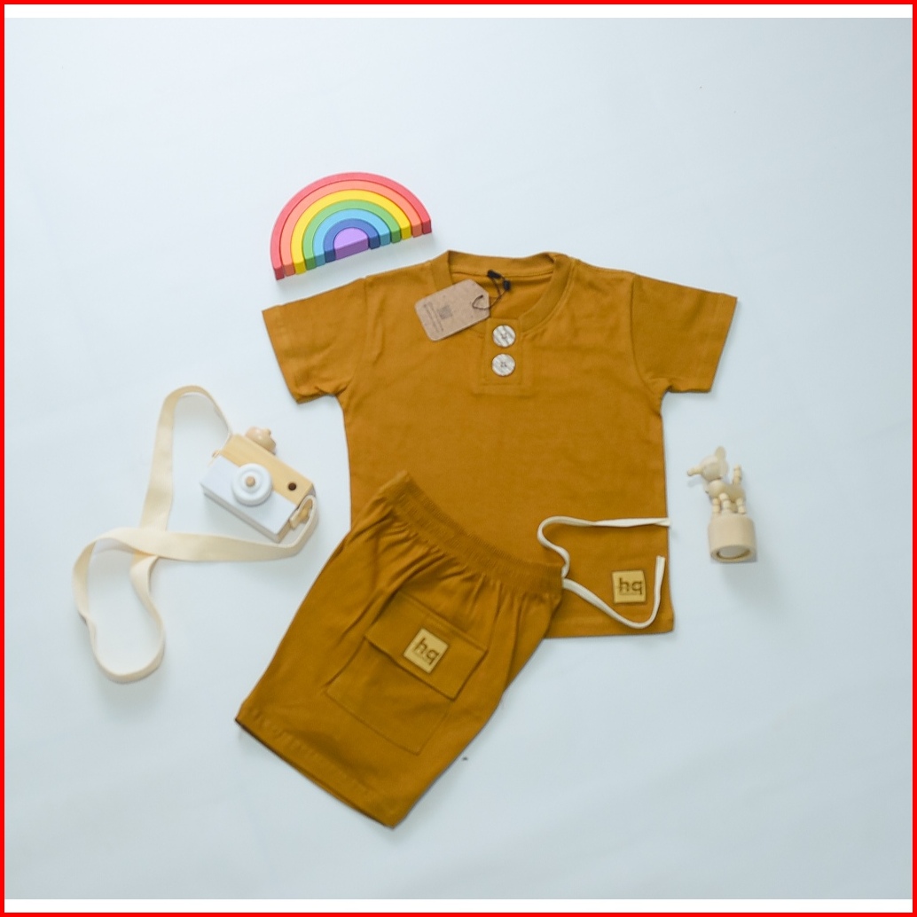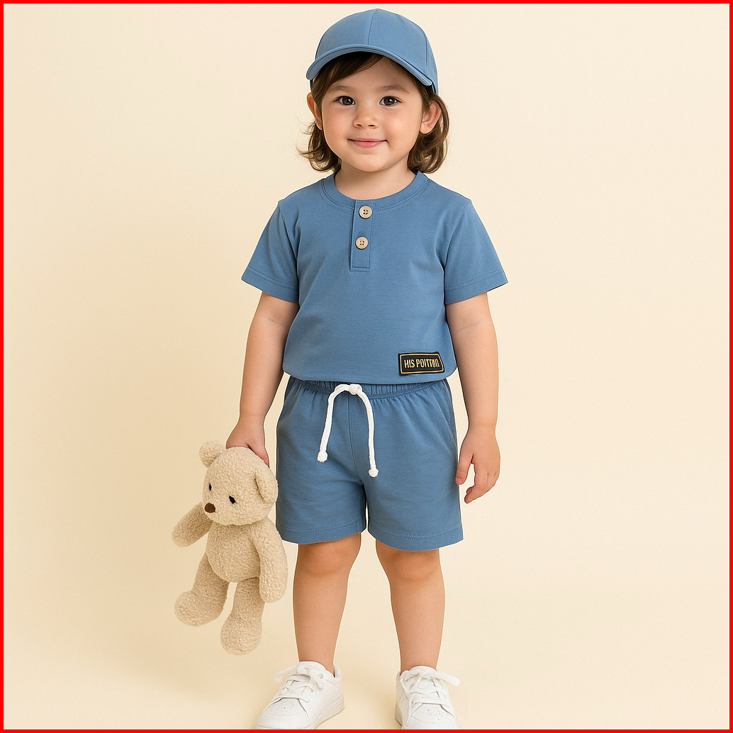 Setelan Baju Anak Laki Laki Perempuan Polos Kancing 1-8 Tahun Katun 30s Lengan Pendek
