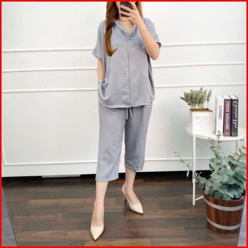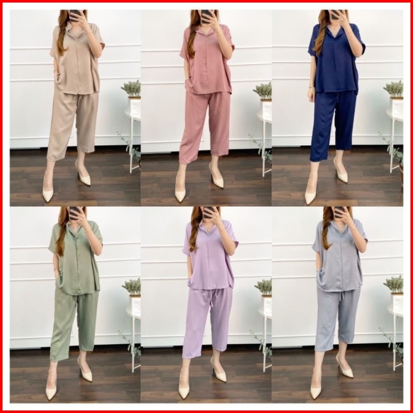 Piyama Babydoll Setelan Wanita Babydoll Celana Panjang Piyama Rayon Pajamas Piyama Sanghai