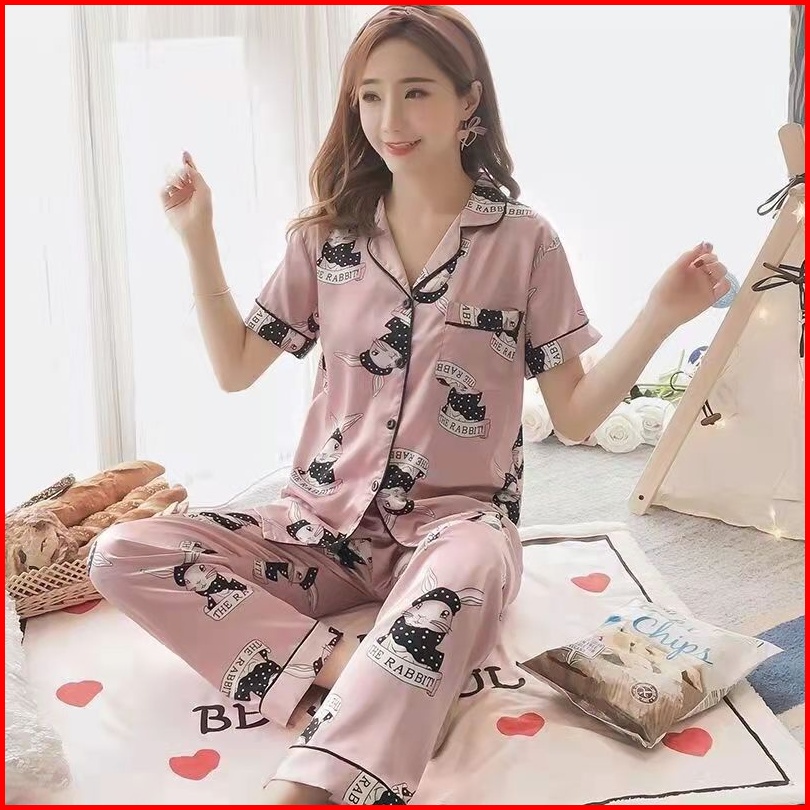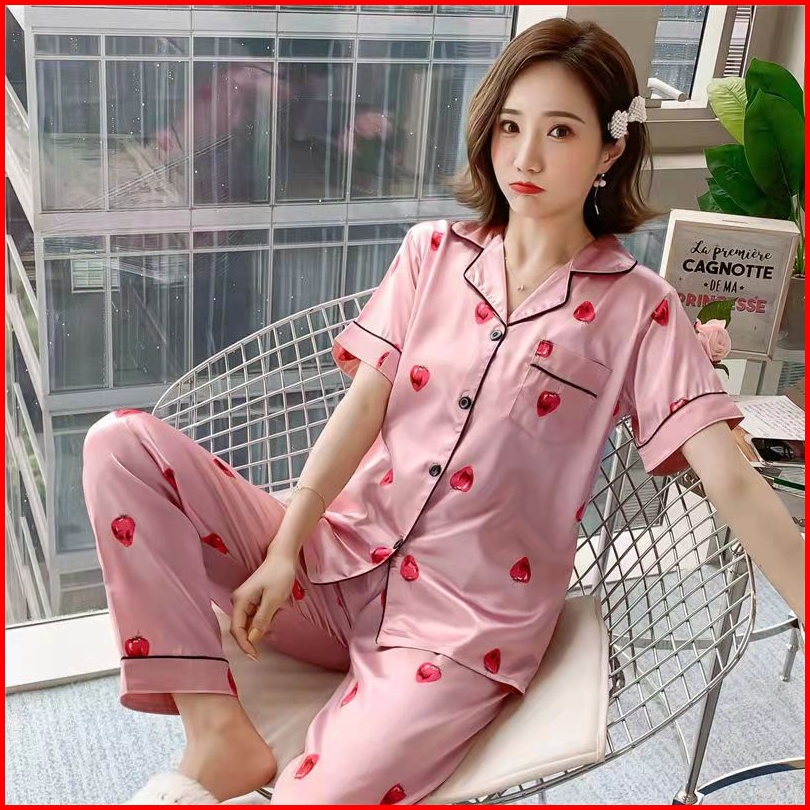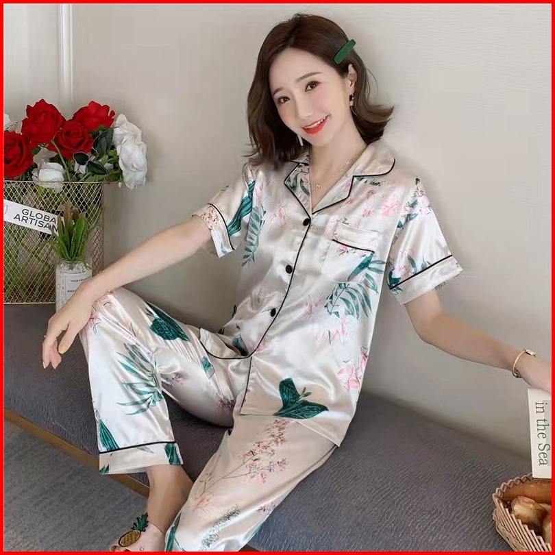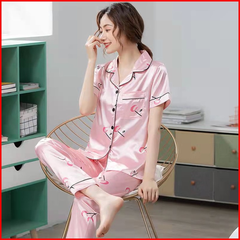 Piyama Sutra Es Piyama Lengan Pendek Celana Panjang Baju Piyama Wanita Piyama Set