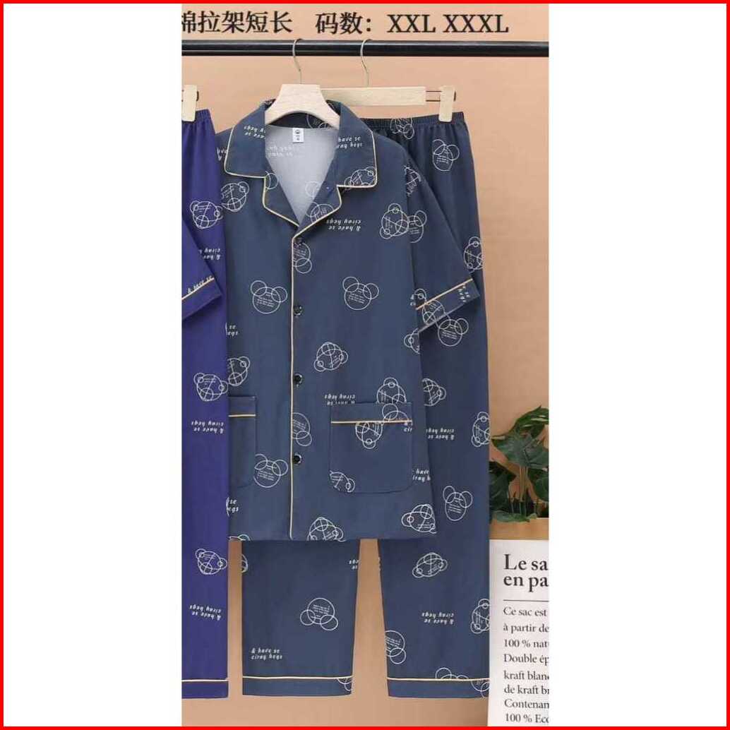 Baju Tidur Pria Remaja Katun Cpk Import Size 3xl Piyama Premium Setelan Celana Panjang Motif Kancing