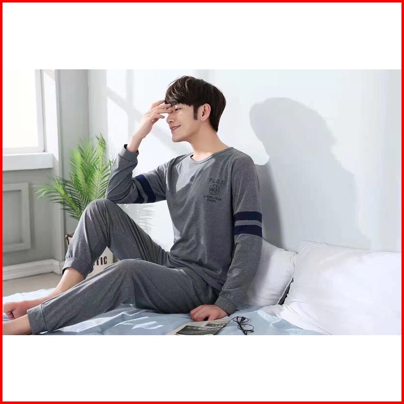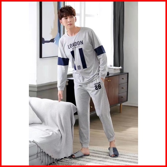 Pajamas Anak Remaja Abg Cowok Pp Kaos Katun Setelan Celana Jogger Pants Motif Ask Grey Abu Big Size L-3xl Terbaru