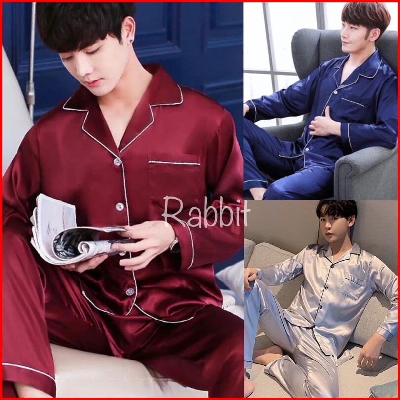 Stelan Baju Tidur Pajamas Panjang Pria Lelaki Satin Exclusive