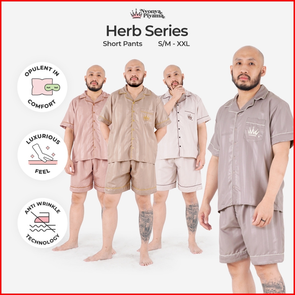 Best Seller Nyonya Piyama Poly Bamboo Set Celana Pendek Pria Polos Herb Series Vol 1