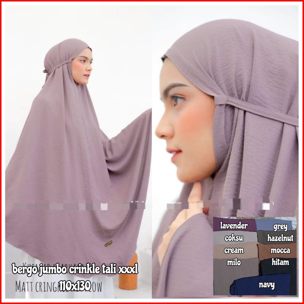 Kerudung Bergo Jumbo Cringkel Airflow Xxxl Tali 110x130