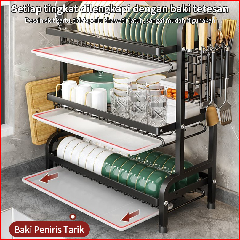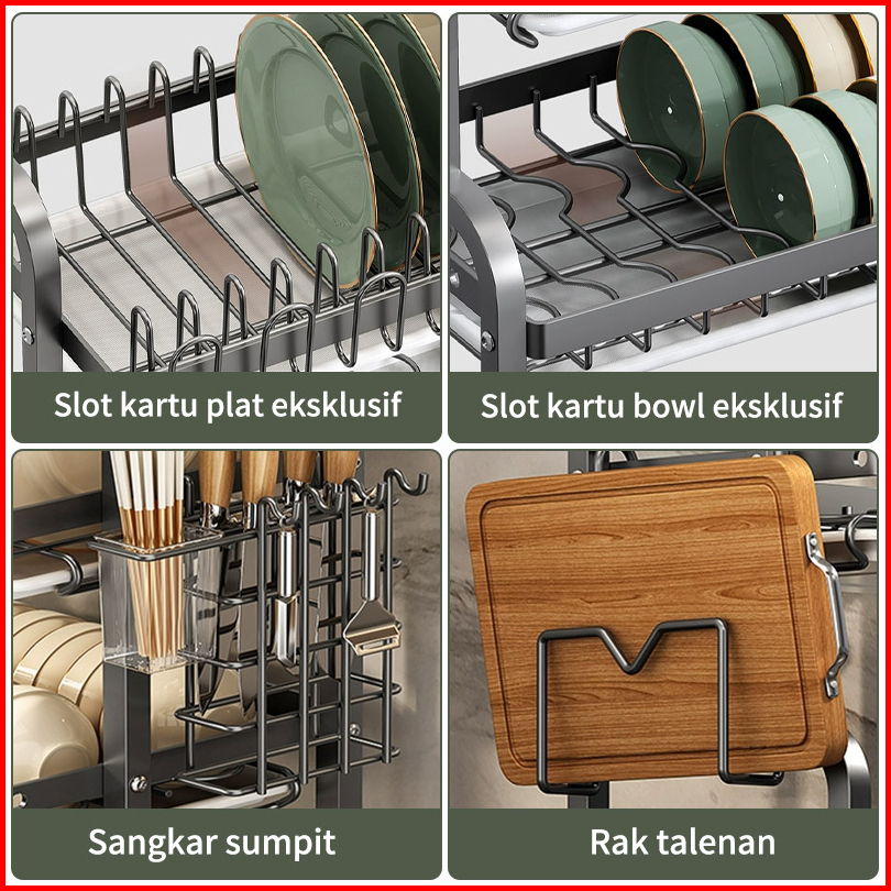 Rak Piring Rak Dapur Rak Cuci Piring Rak Penyimpanan Dapur Rak Pengering Piring Rak Mangkuk Piring Dengan Aksesoris