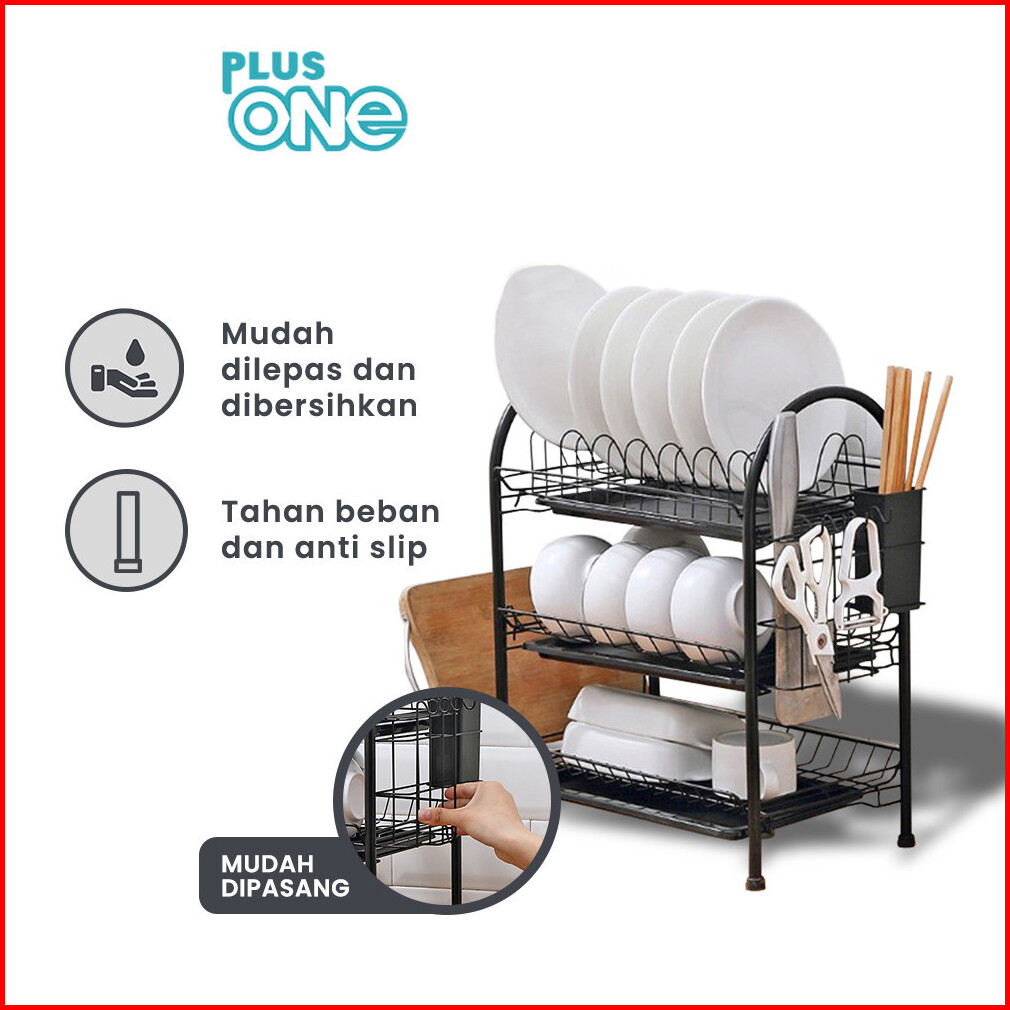 Plus One Rak Peralatan Dapur Serbaguna Rak Piring Susun Stainless 2 - 3 Tingkat 1024