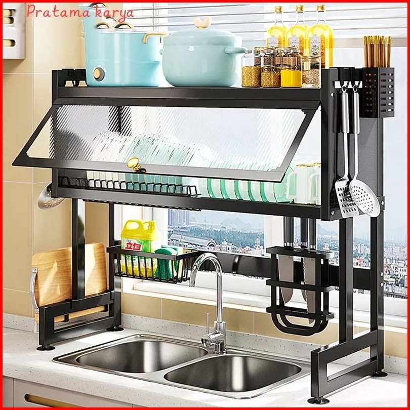 Rak Piring Wastafel 2 Susun Stainless Hitam Ada Penutup Kuat Dan Kokoh