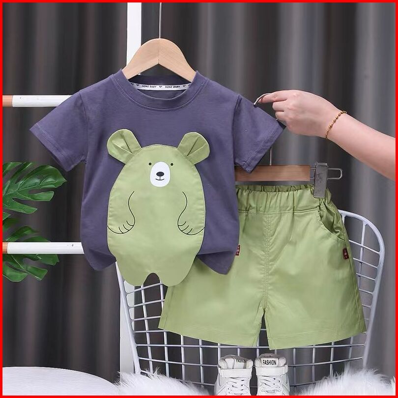 Ma Be Setelan Baju Anak 0-5 Tahun Setelan Anak Laki Laki Import Stelan Kaos Gambar Beruang Anak Cowok Import Celana Pend